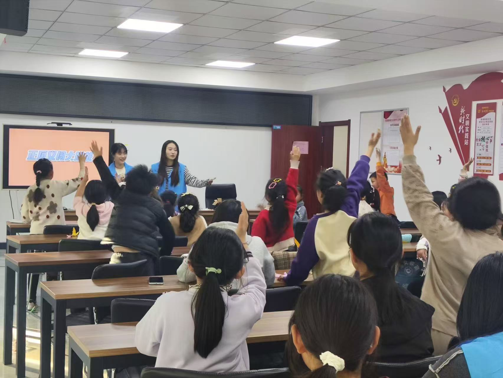 志愿者组织“正反义词大挑战”等趣味语言游戏,锻炼小朋友的语言反应能力,激发他们的创造力,在欢声笑语中,小朋友们加深了对文字的理解和运用。