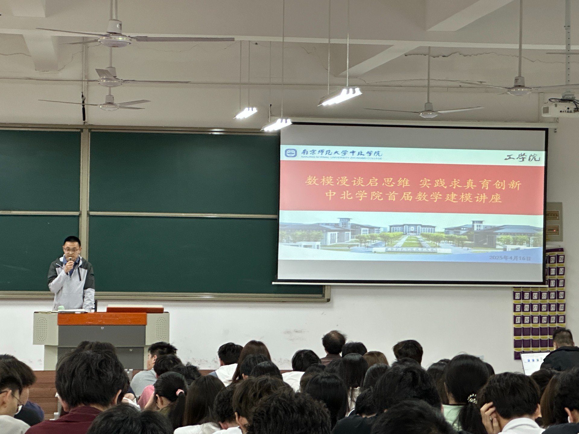 为进一步提升学生数学核心素养与创新能力,助力学子备战全国大学生数学建模竞赛,4月16日,由教务处主办、工学院承办的“数模漫谈启思维,实践求真育创新”大学生数学建模竞赛讲座在敏行楼举行。本次讲座吸引了近200名师生参与。南京师范大学朱群生副教授、学院教务处沈巍副处长、大学数学教学部主任黄伯强老师先后为师生们带来了一场兼具理论深度与实践价值的学术分享。讲座由工学院副院长楼飞主持。