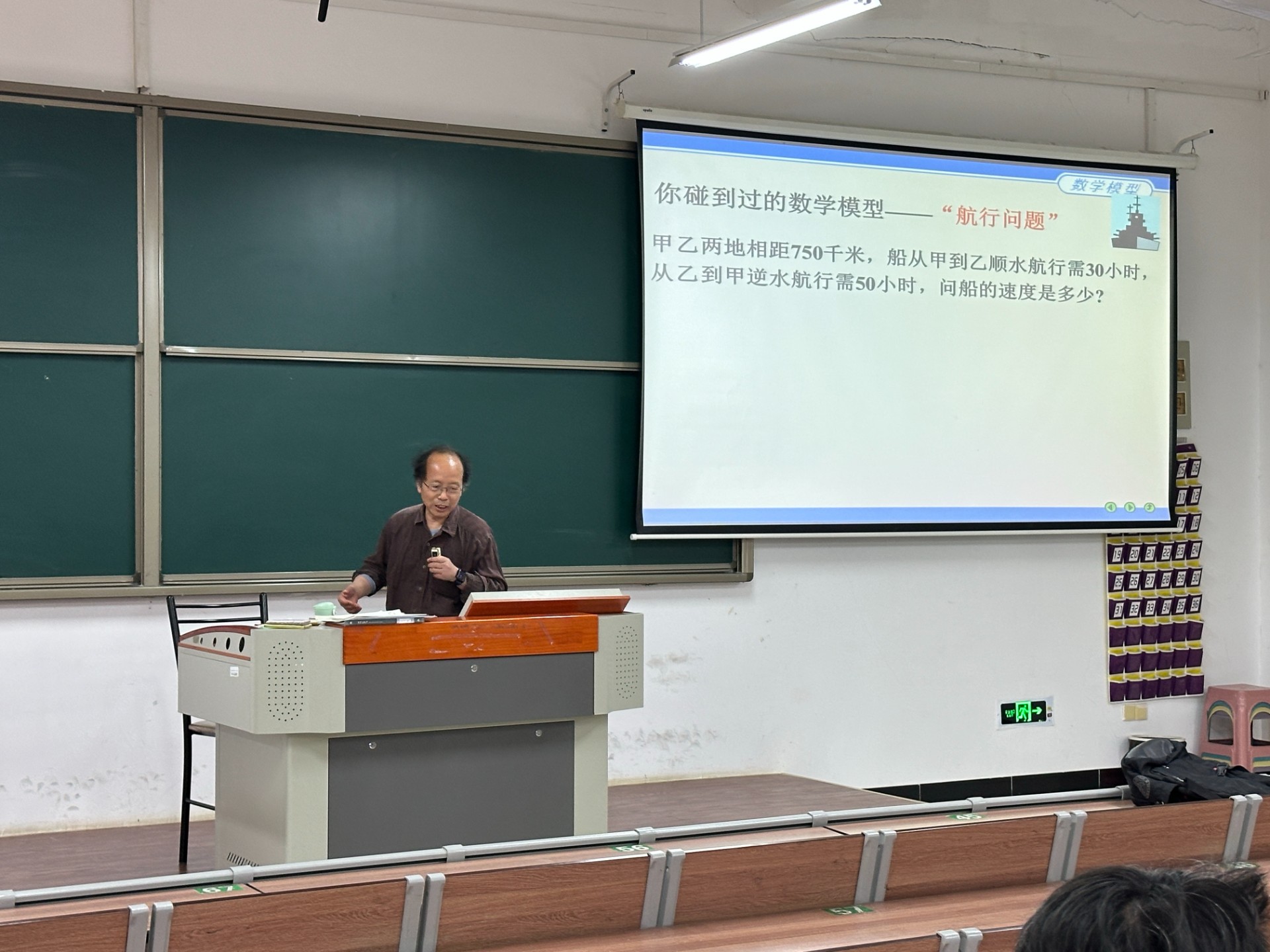 朱群生副教授首先开讲,他以“算法解密:从现实问题到数学语言的转化艺术”为题,从互联网巨头谷歌的PageRank算法出发,系统阐述了数学建模的四维思维框架——"问题抽象-模型建立-算法求解-实践检验"。他通过生动案例演示了如何将复杂现实问题转化为严谨的数学表达,强调建模过程既需理论支撑,更需兼顾现实可操作性。他形象地比喻道“数学建模就像搭建思维桥梁,既要保证结构的科学性,更要关注桥梁是否能真正通向解决方案。”