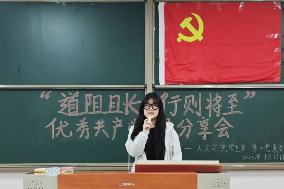 为树立卓越榜样,强化正确价值观引领,激发学生学习动力,人文学院于2025年4月15日18:00在敏行楼229教室开展优秀共产党员分享会。