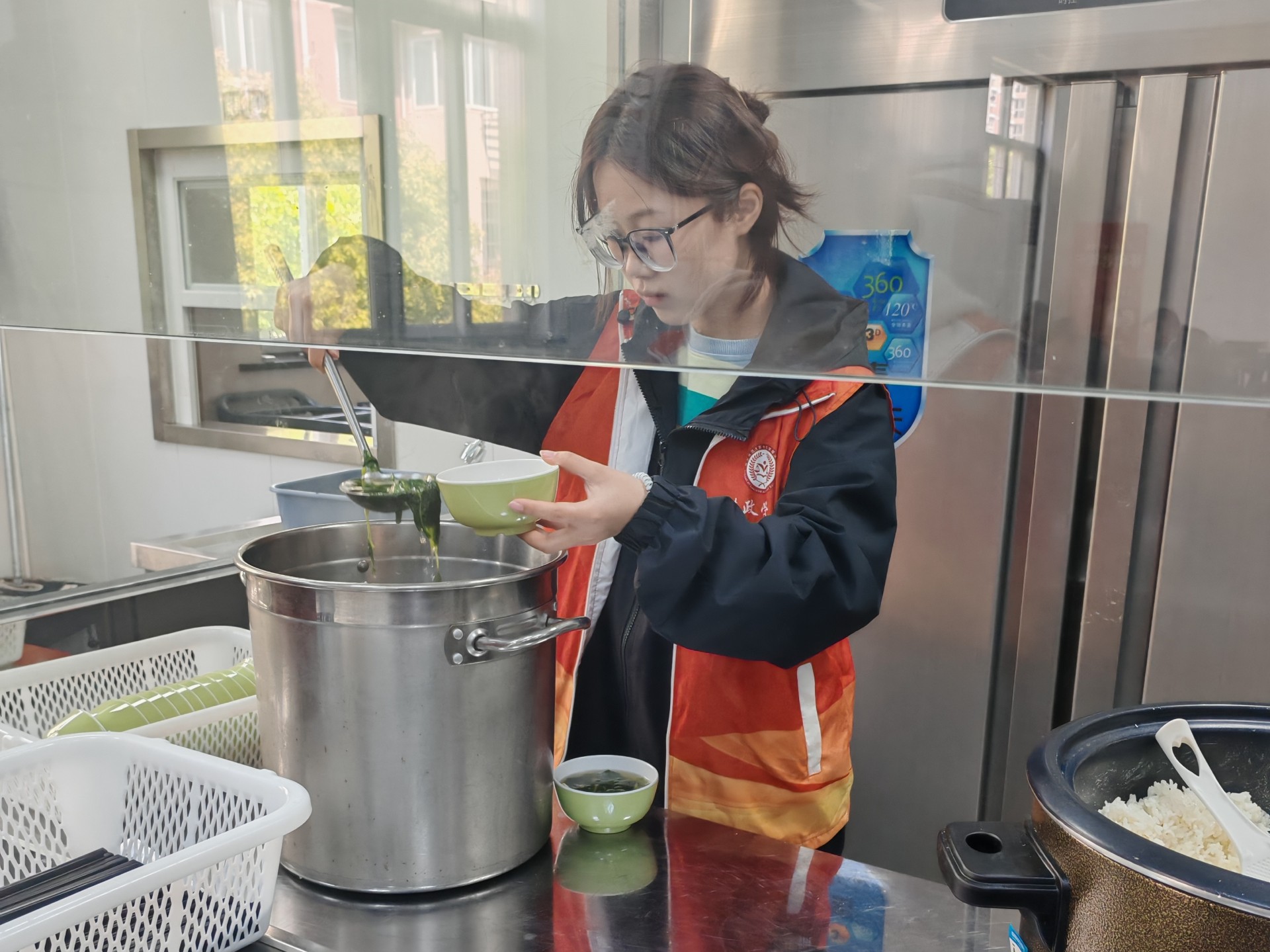 饭后,6名志愿者分头行动,前往两个食堂。在食堂里,他们帮助老人们打饭,细心地询问每位老人的饮食偏好,确保每个人都能吃到合口味的饭菜。志愿者们还陪伴老人们用餐,和他们聊天,让老人们感受到家的温暖。餐后,他们一起收拾餐具,确保食堂的整洁。这些细微的举动,都让老人们感到十分欣慰。