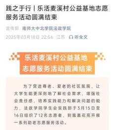 献爱春时添锦绣,逐光志愿耀星河。我院系列志愿服务顺利开展,成效斐然,不仅为社区居民提供帮助,并进一步提升社区的凝聚力,其中还受到丹阳教育信息网、丹阳新闻等多家媒体宣传报道,显著扩大了我院志愿服务的社会影响力。