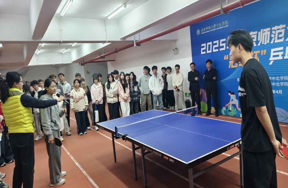 在技术动作指导与互动环节,同学们热情高涨,纷纷来到乒乓球桌前,与张莹莹展开了一场别开生面的技艺切磋。张莹莹耐心地从握拍姿势、发力技巧等方面进行讲解,亲自示范,并对同学们在技术姿势方面存在的问题给予了专业的改进意见。这场互动不仅让同学们受益匪浅,更让他们深刻感受到了乒乓球运动的魅力所在。