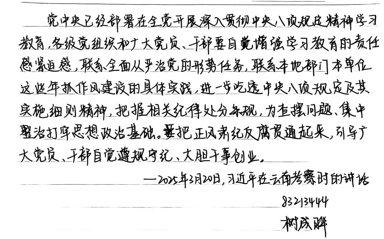 此次学习有力推动全体党员思想同频共振、目标高度统一,切实发挥了凝心聚力、锚定航向的积极作用。希望全体党员始终保持政治清醒,把中央八项规定作为行为标尺,时刻警惕“四风”问题隐形变异,以实际行动彰显新时代党员的先锋本色。