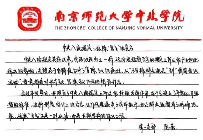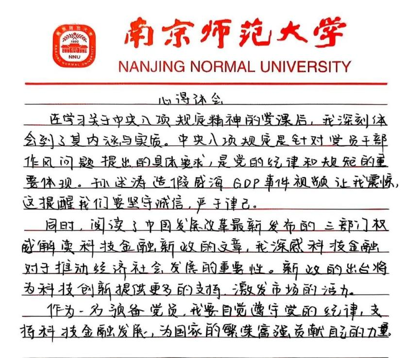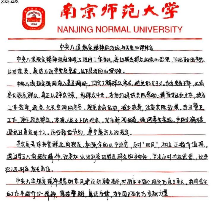 为助力学院党员更为透彻地领会中央八项规定及其精神内涵,商学院特开展此次专题学习心得笔记展示活动。其核心目标在于深度学习领会并贯彻执行中央八项规定及其实施细则精神,推动全体师生党员全面从严治党持续向纵深方向发展。身为高校党员,我们承担着立德树人这一根本任务,更应以身作则,凭借优良党风引领校风、教风和学风建设。