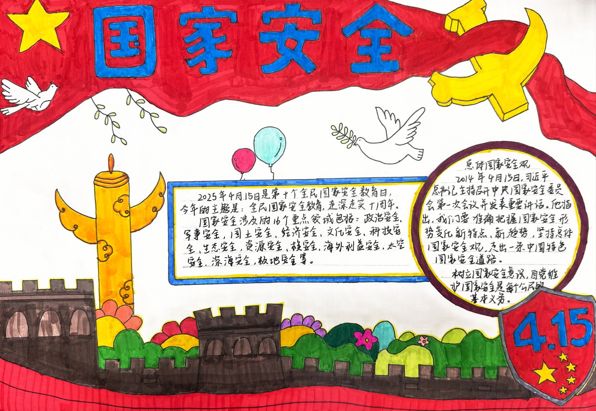 活动期间,收到多幅手抄报作品。这些作品风格各异,有的以震撼的画面展现国家安全面临的挑战,呼吁大家提高警惕;有的用温馨的笔触描绘维护国家安全后的美好景象,传递积极向上的信念。经专业评委从主题契合度、创意新颖性、绘画技巧、文字表达等多方面综合评审,最终评选出一、二、三等奖及优秀奖若干名。