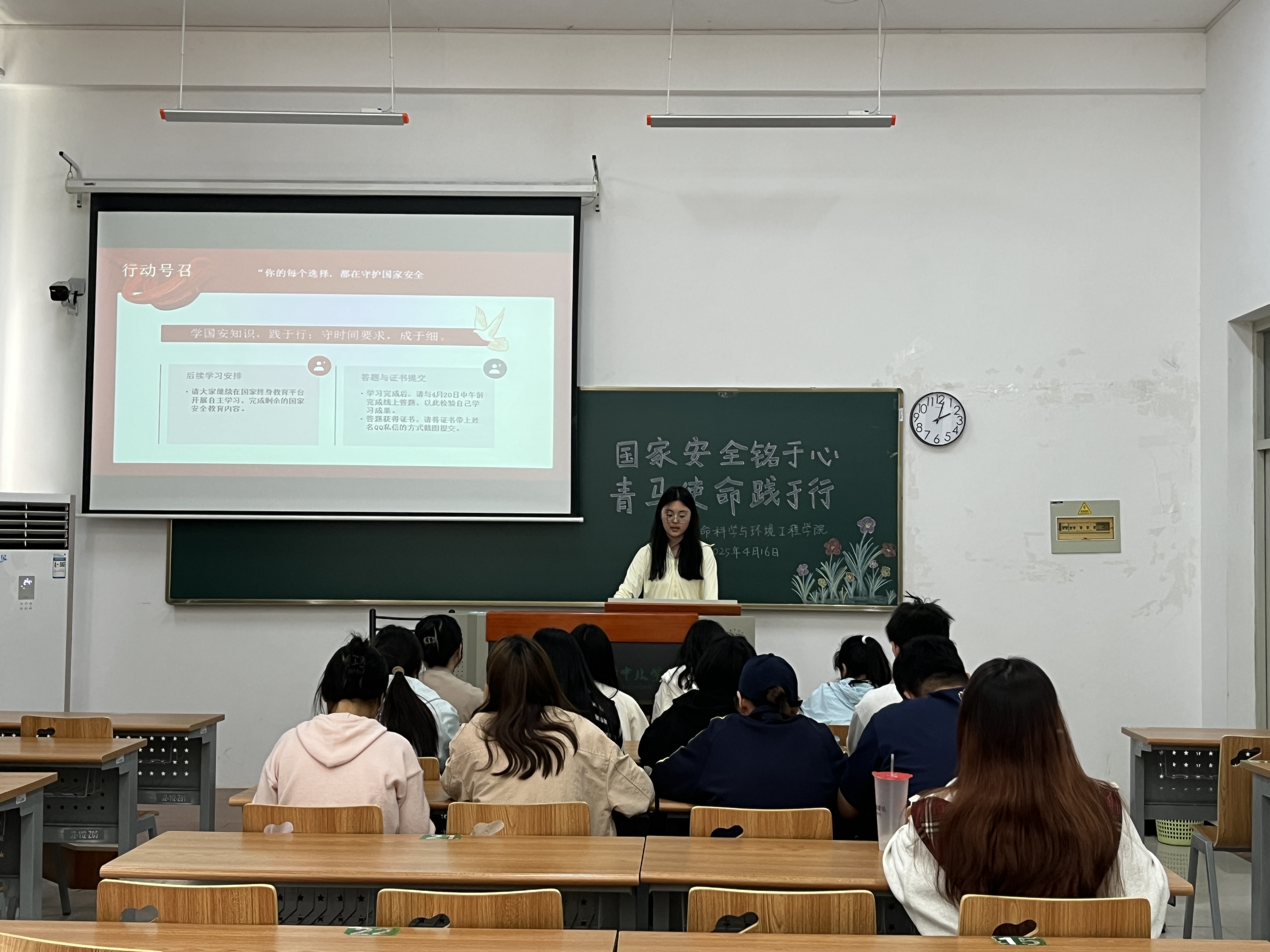 为深入贯彻习近平总书记关于全面加强国家安全教育的重要指示精神,增强我院师生的国家安全意识和法治意识,2025年4月16日,生命科学与环境工程学院第一期青马班在敏行楼112教室开展了一场主题为“国家安全铭于心,青马使命践于行”的国家安全教育学习活动。