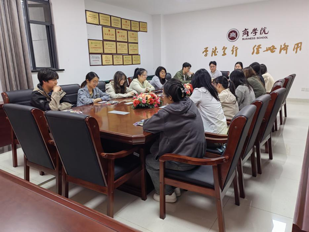 2025年4月24日,商学院在正则楼402举办第三期“书记下午茶—倾听你声音,共建‘心’商院”的交流座谈会。商学院分团委书记程之伟、商学院辅导员张沁玥与大三班级心理委员坐在一起,在轻松的氛围下畅所欲言、共话成长。此次座谈会由张沁玥老师主持。