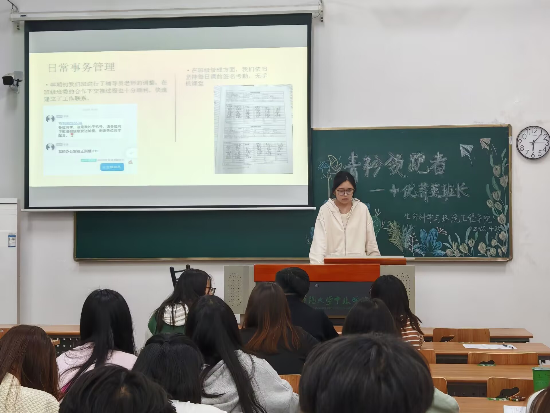 为充分发挥学生干部的先锋模范作用,激励班长群体充分发挥领导力,推动班级管理与学风建设发展,2025年4月25日下午,生命科学与环境工程学院举办第一届“青衿领跑者——十优菁英班长”评选活动。