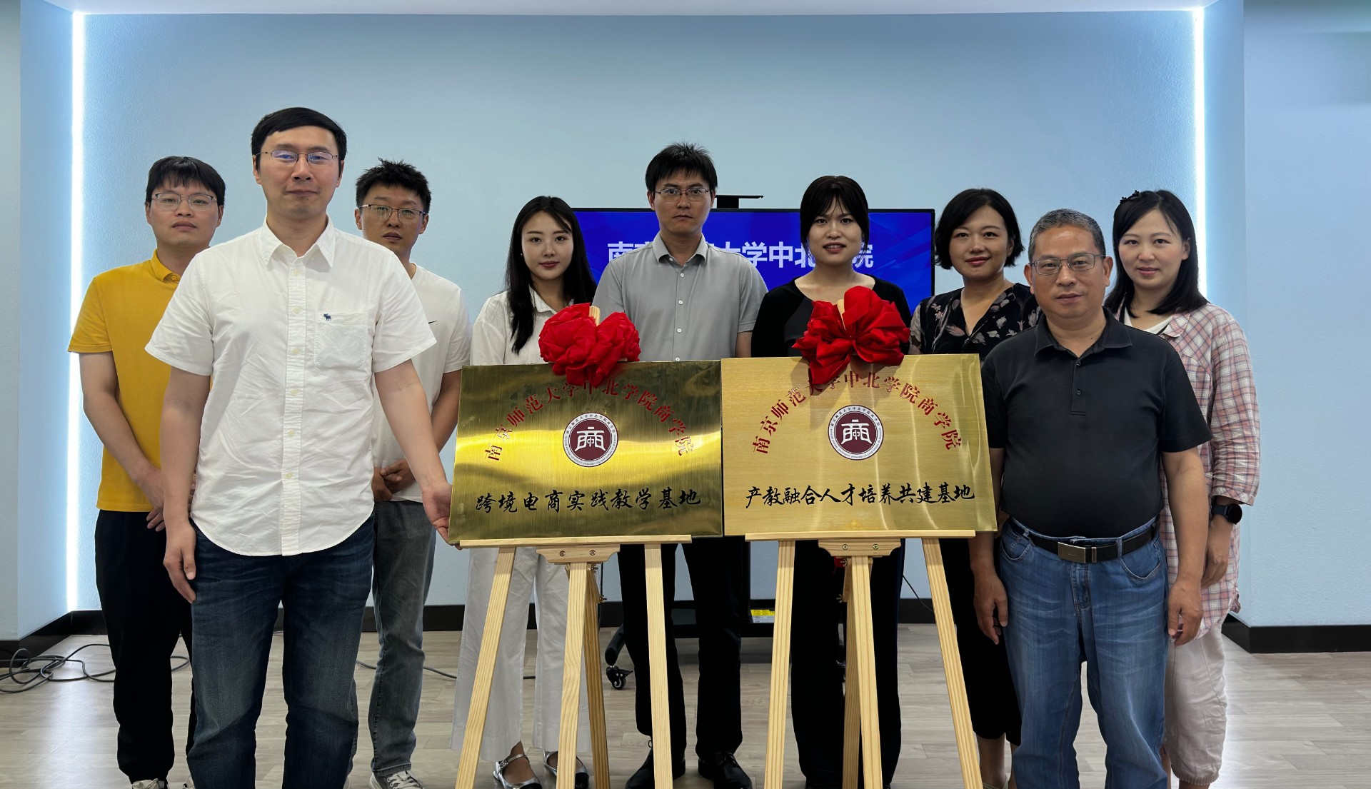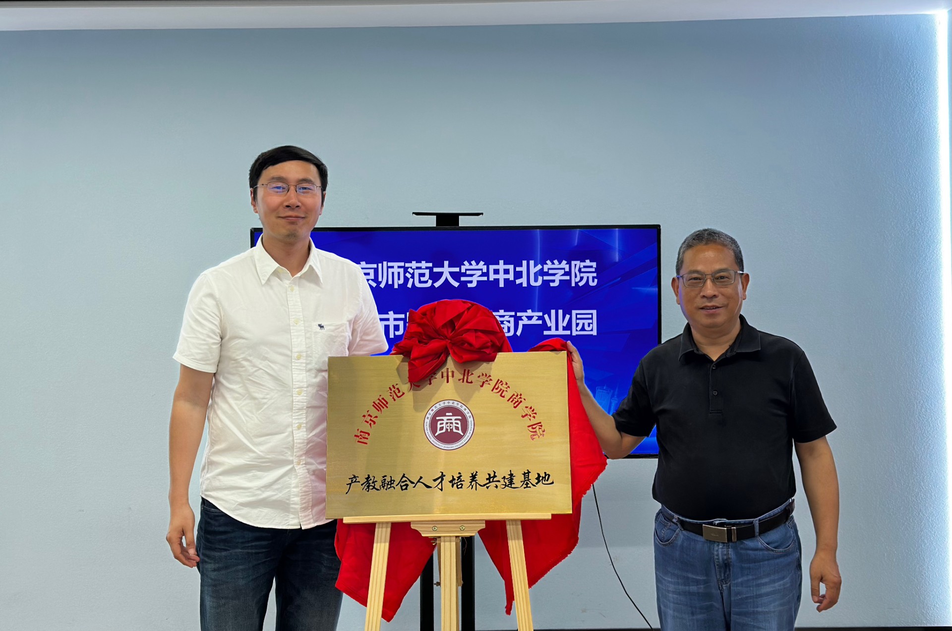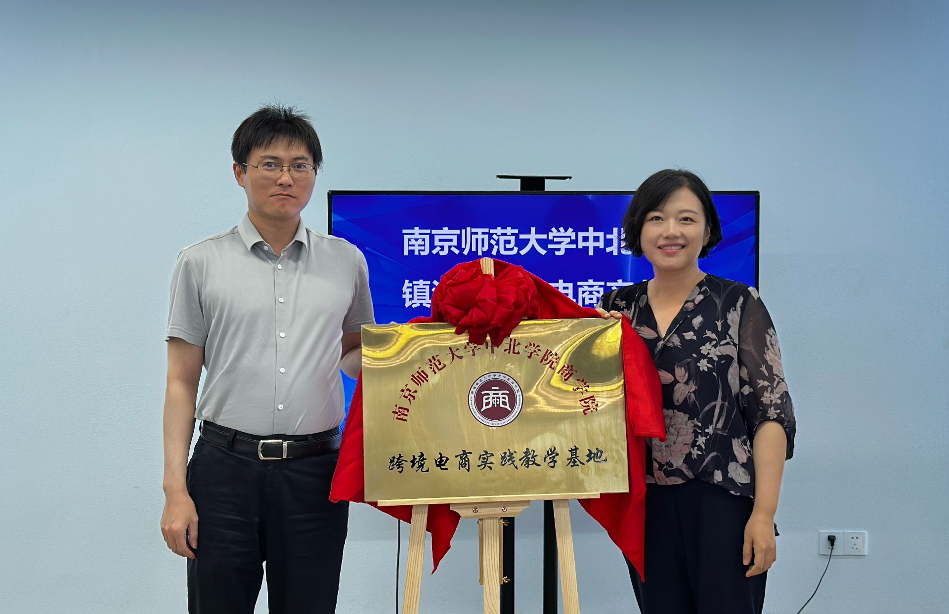 由商学院院长田文与镇江商务局开发区处处长张毅刚为产教融合人才培养共建基地揭牌。