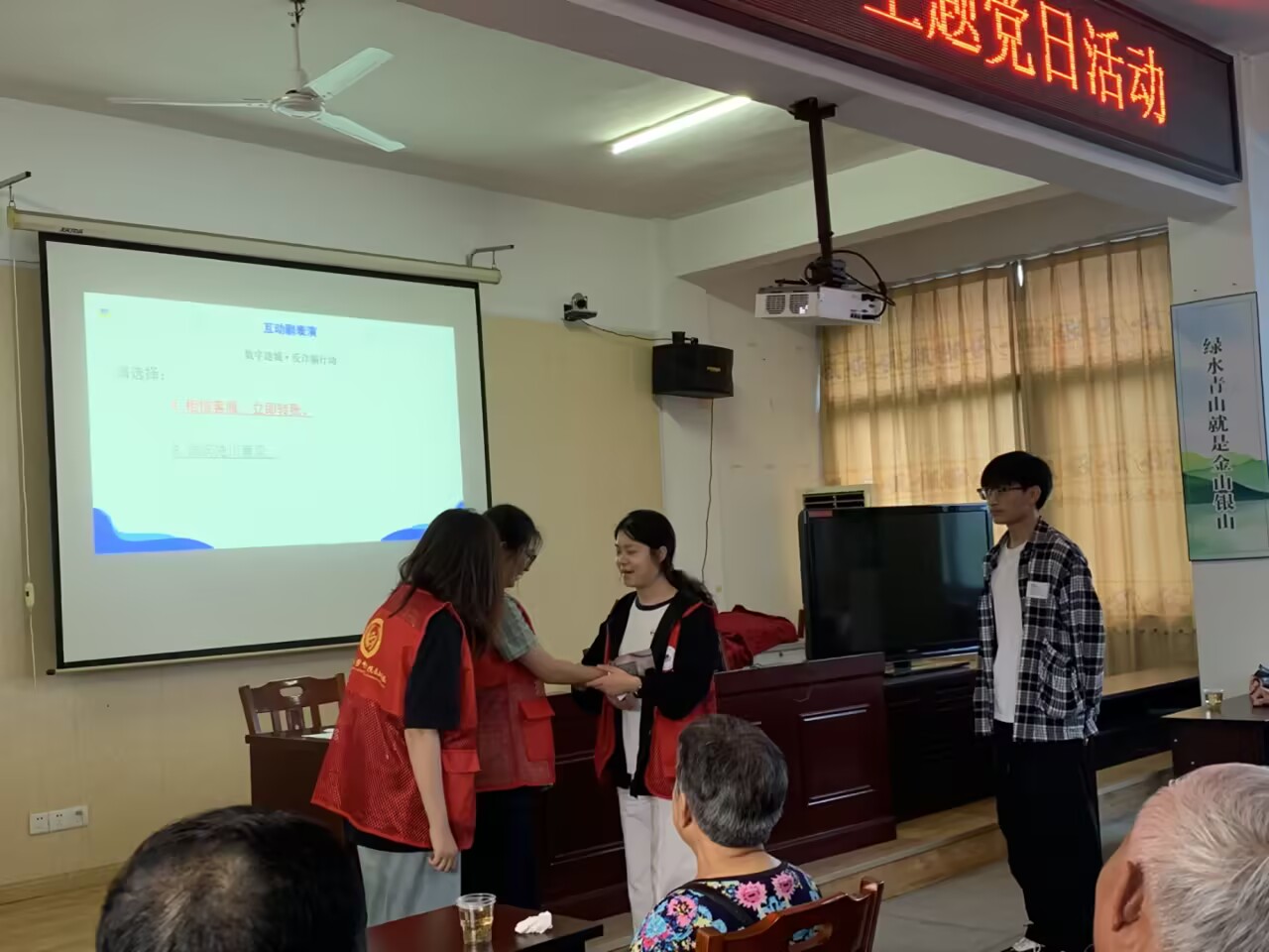 随后,同学们为老人们带来了《养生陷阱》《网络诈骗》两个反诈互动剧的表演。活动采用“演戏+提问”的方式,同学们在表演中积极与老人们互动,让他们从被动观看变为主动解谜,轻松识破了“托儿“假专家”等常见套路,现场更是模拟了“遇到诈骗如何应对”。这场表演不仅让老年人们在轻松愉快的氛围中学习到了实用的反诈技巧,更增强了他们的防骗意识。