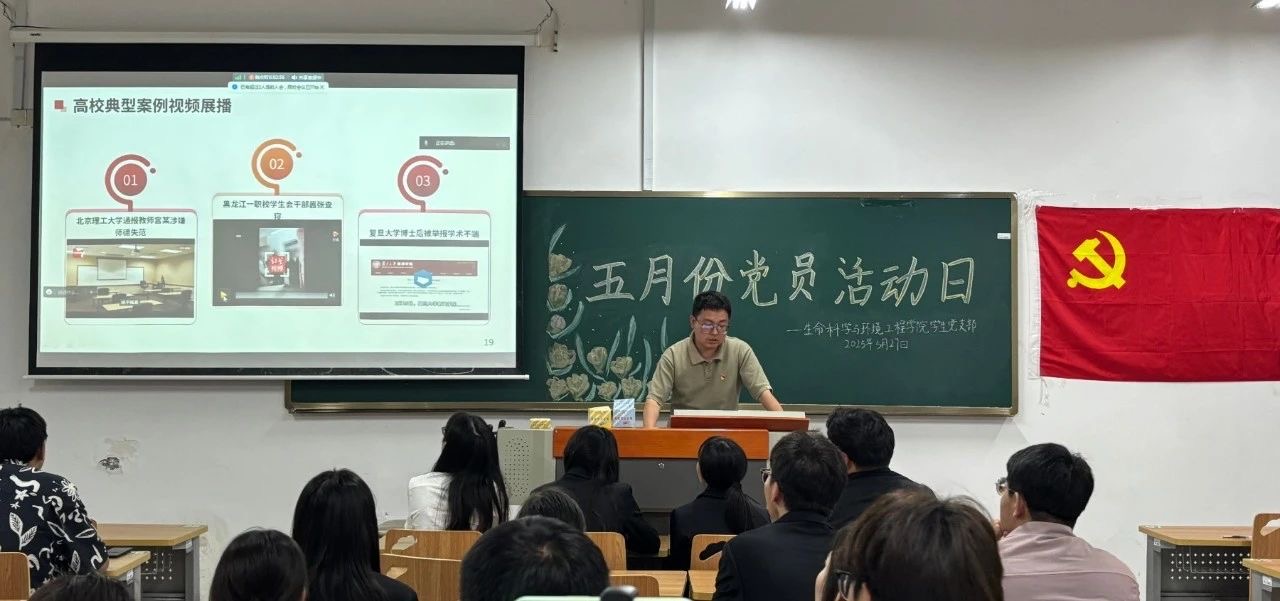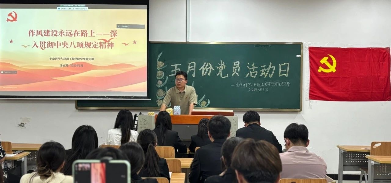 为扎实开展深入贯彻中央八项规定精神学习教育,2025年5月27日,生命科学与环境工程学院学生党支部于一教102教室开展五月份党员活动日暨“深入贯彻中央八项规定精神”专题党课。生命科学与环境工程学院学生党支部书记朱雨炜老师以及全体学生党员参会,会议由胡鑫浩同学主持。