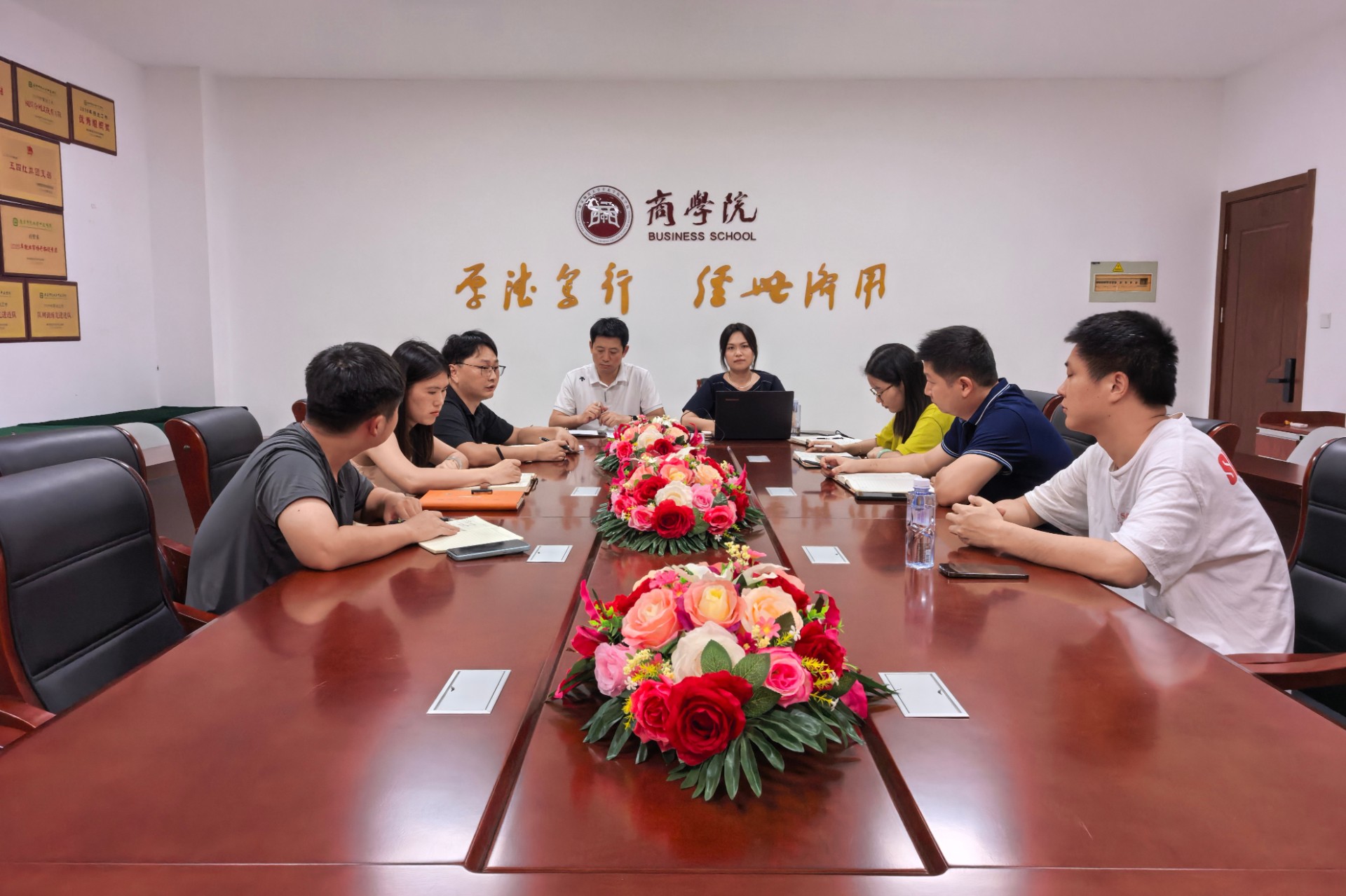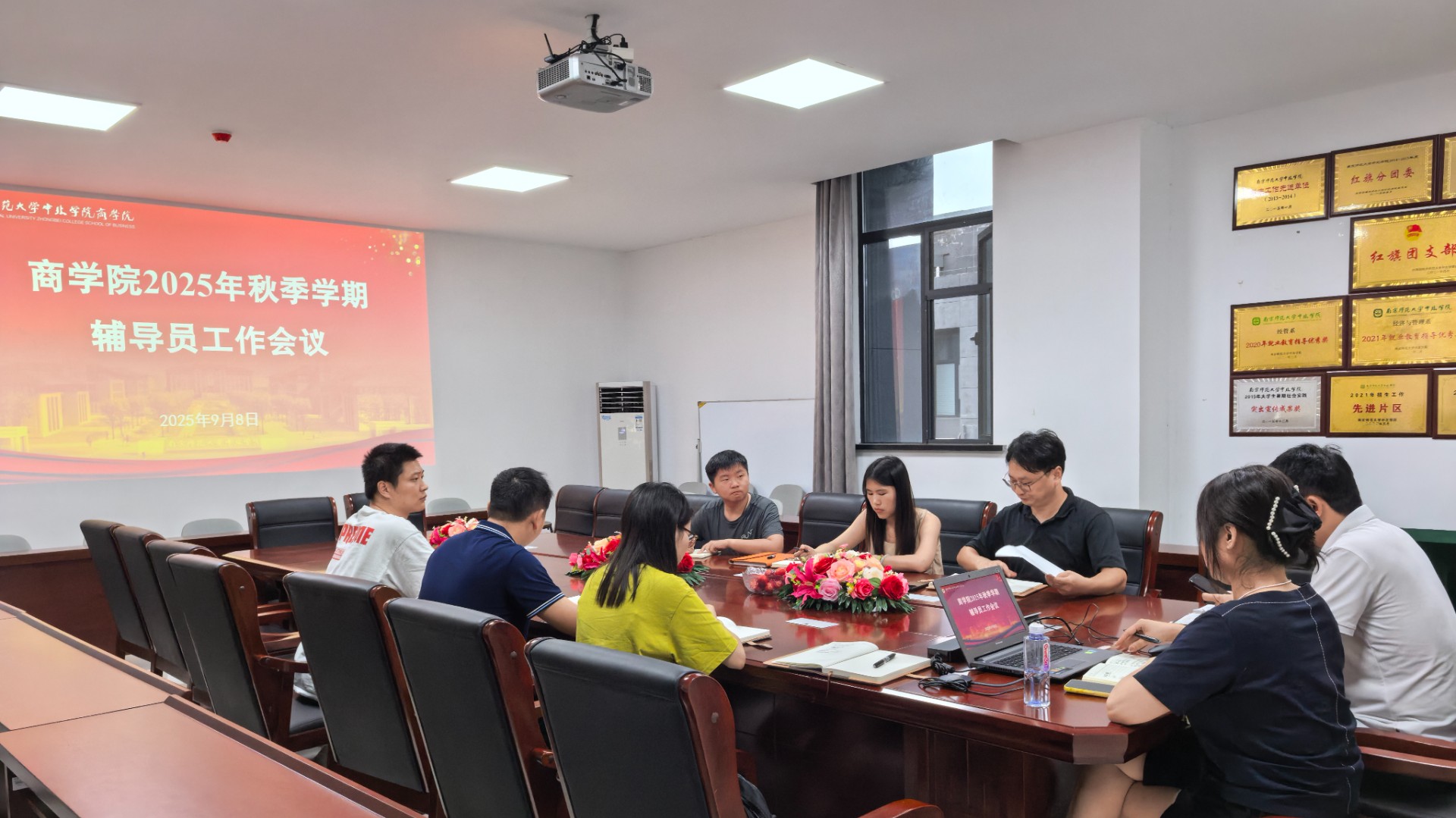 2025年9月8日,商学院在正则楼402会议室召开秋季学期辅导员全体大会。会议由商学院党总支副书记孙一老师主持,党总支书记肖波老师出席会议。