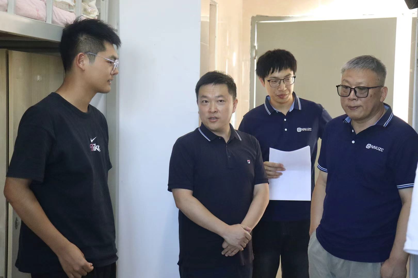 傍晚,信息工程学院院长曲维光、党总支书记孙茂华、党总支副书记周健、副院长张洁、辅导员王志超、杨艳前往新生公寓看望新生,与他们亲切交谈,从学业规划、生活适应到安全注意事项等方面,逐一叮嘱、细致关怀,让新生在初入校园时便倍感安心。