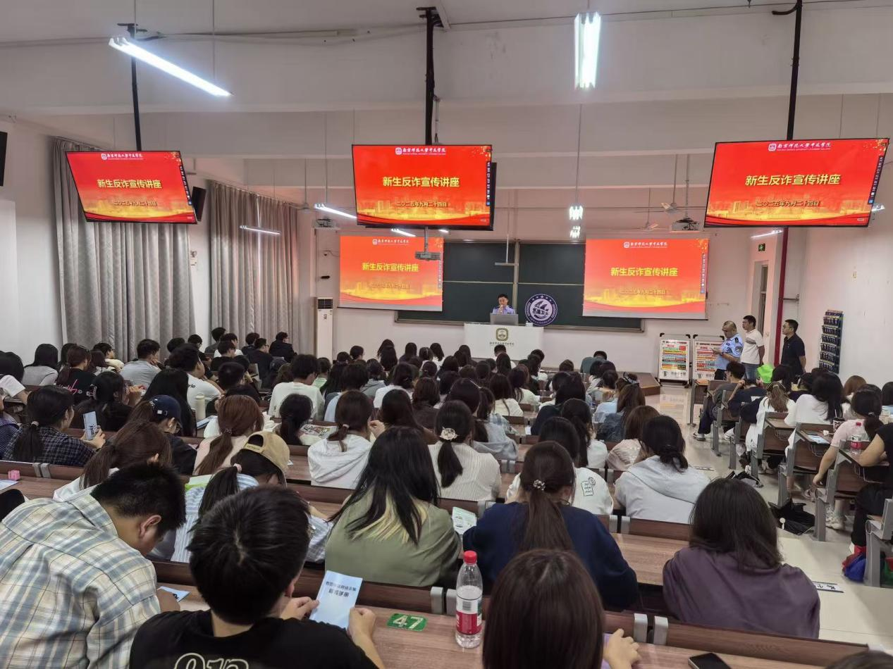 为筑牢校园反诈防线,增强新生对电信网络诈骗防范的意识,守好新生和家长们的“钱袋子”,9月24日下午,后勤与保卫处联合学工处(团委)、丹阳市公安局刑侦大队反通讯网络诈骗中队、“水城卫士”练湖派出所,对我校新生开展防电信网络诈骗宣传讲座,普及反诈知识。2025级新生近2000人参加了本次讲座。