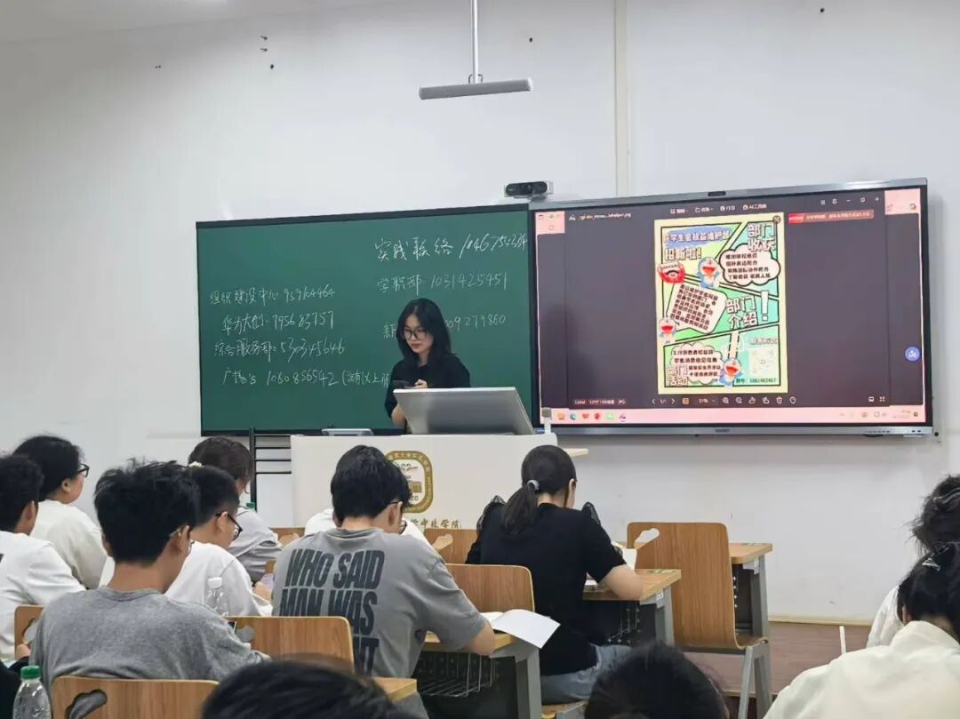 宣讲过程中,部门主要负责人向新生详细介绍了部门的核心工作、特色活动及招新要求,内容涵盖学生服务、文化建设、学习帮扶、体育活动等多个方面。现场氛围热烈,新生们认真聆听,并积极与学长学姐交流,进一步明确了各部门的定位与发展方向。