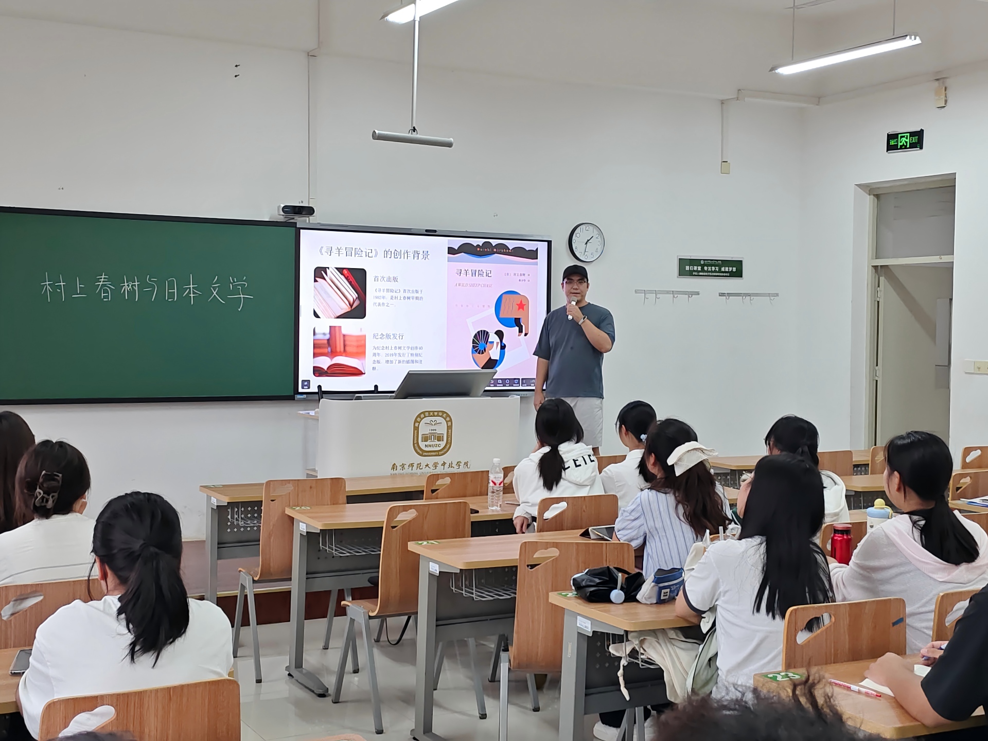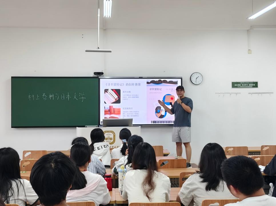 作为《日本概况》课程系统性改革的一部分,2025年9月29日下午,外国语学院于敏行楼303教室以讲座形式开展第二次授课,主题为“村上春树与日本文学”。讲座由郑季文老师主讲,面向2024级日语专业学生和日语系导师制学生。