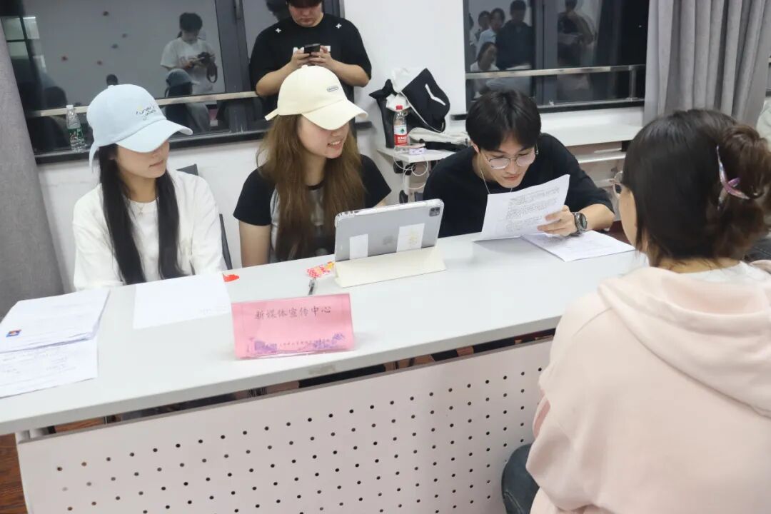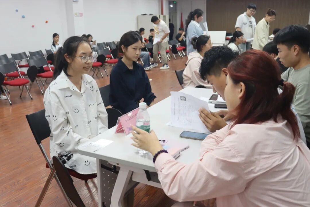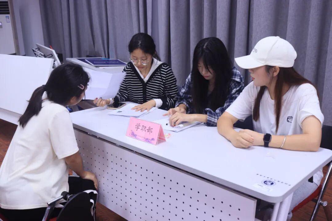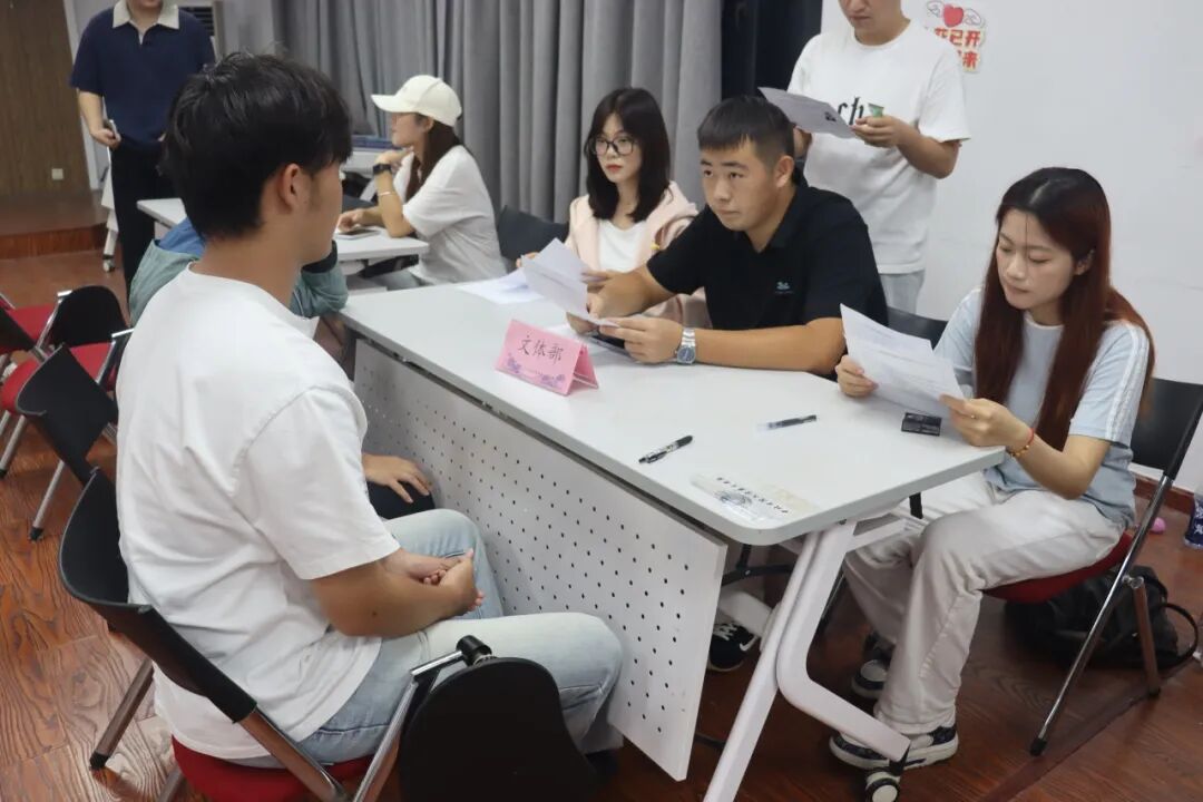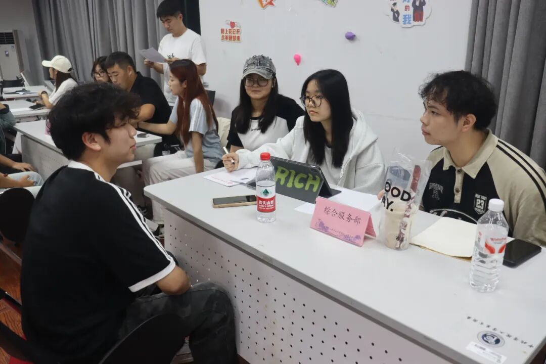 面试环节在两教室同步进行,现场气氛热烈。2025级新生依次入场,围绕个人优势、对部门的认知及未来工作规划等方面展开阐述,展现出良好的表达能力与服务意愿。各部门负责人秉持“公平、公正、公开”原则,结合部门实际需求提问,从责任意识、协作潜力等维度综合考察,全面评估同学们的适配程度。