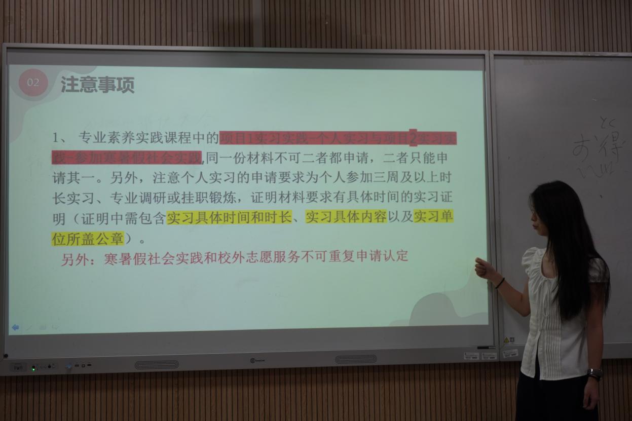 培训伊始,会议负责人张晶晶同学系统阐述了PU口袋校园学分在大学生综合素质评价中的重要意义,指出其不仅是衡量学生实践成果的重要依据,更是引导学生拓展课堂外能力、实现多元成长的有效指引。随后,她详细介绍了学校关于PU学分获取的梯度标准与具体要求,帮助团支书明确工作方向,为后续组织班级同学参与实践活动奠定基础。