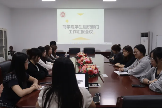 10月14日下午,商学院学生组织主要负责人述职会议在正则楼会议室召开。本次会议由商学院辅导员史文老师主持,学生组织各部门主要负责人共同参与。