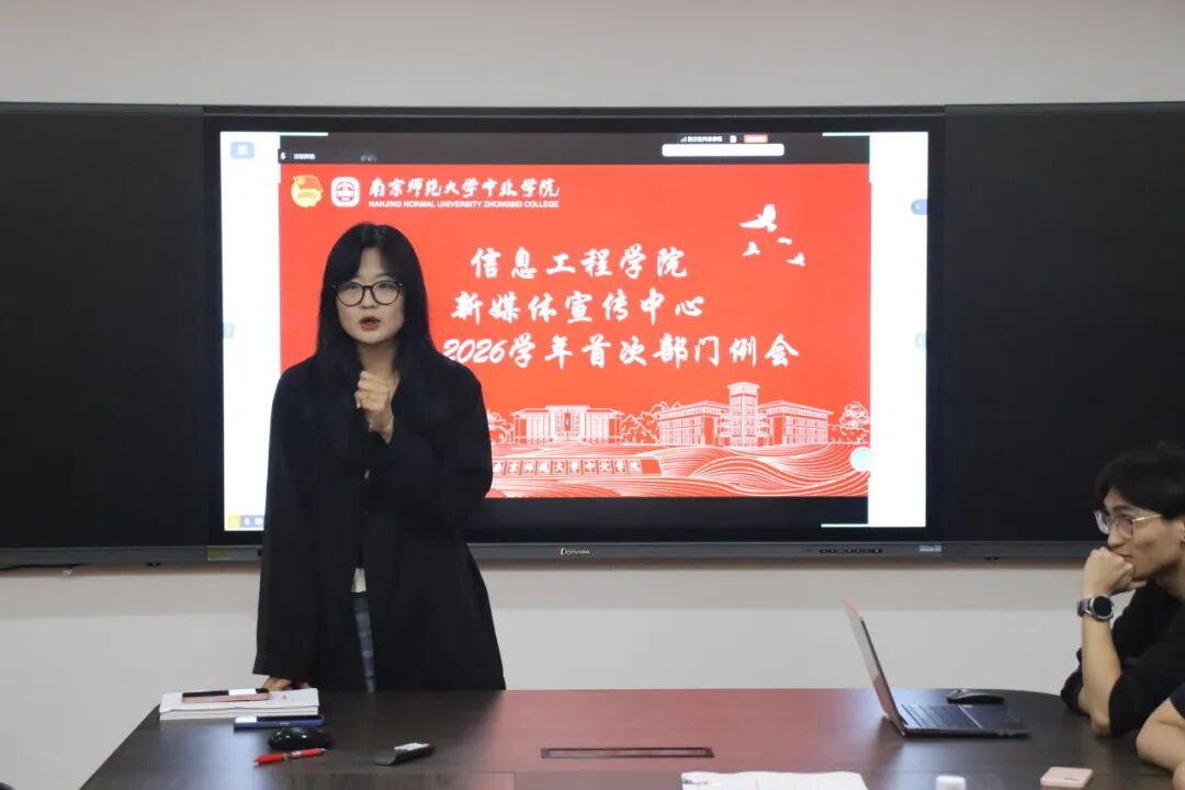 会议伊始,新老成员依次进行自我介绍,现场气氛融洽。随后,张艺茹老师对部门的主要职责与工作内容进行了详细介绍,帮助新成员全面了解部门职能,并对新同学的加入表示热烈欢迎。她鼓励全体成员在新学期中持续深耕、积极作为,共同推动新媒体宣传工作迈向新台阶。