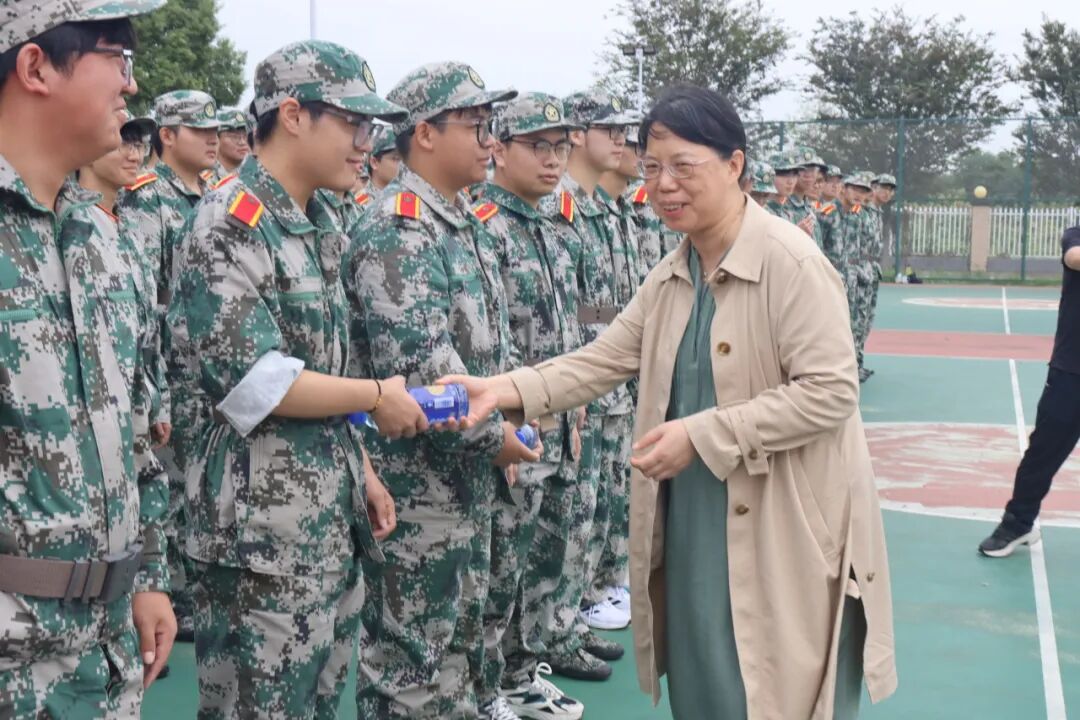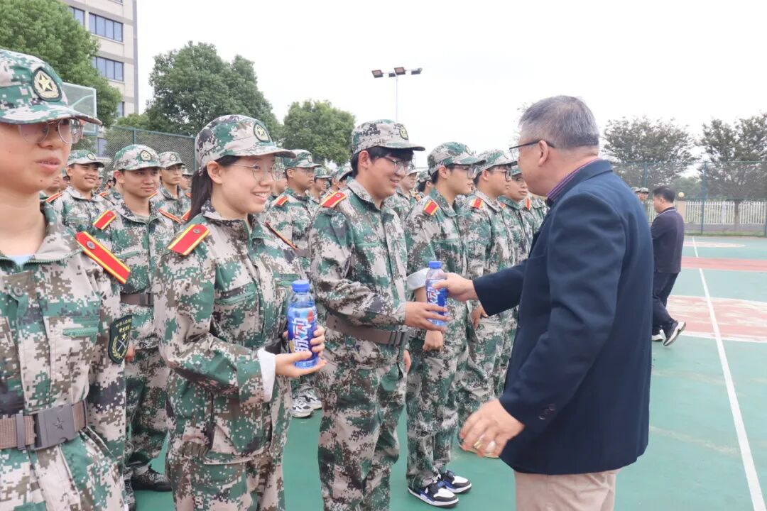 慰问环节,学院领导们为同学们送上饮料,用实际行动传递关怀与鼓励。现场氛围热烈融洽,新生们纷纷表示,将把这份关怀转化为动力,以更饱满的热情投入后续军训与学习生活中。