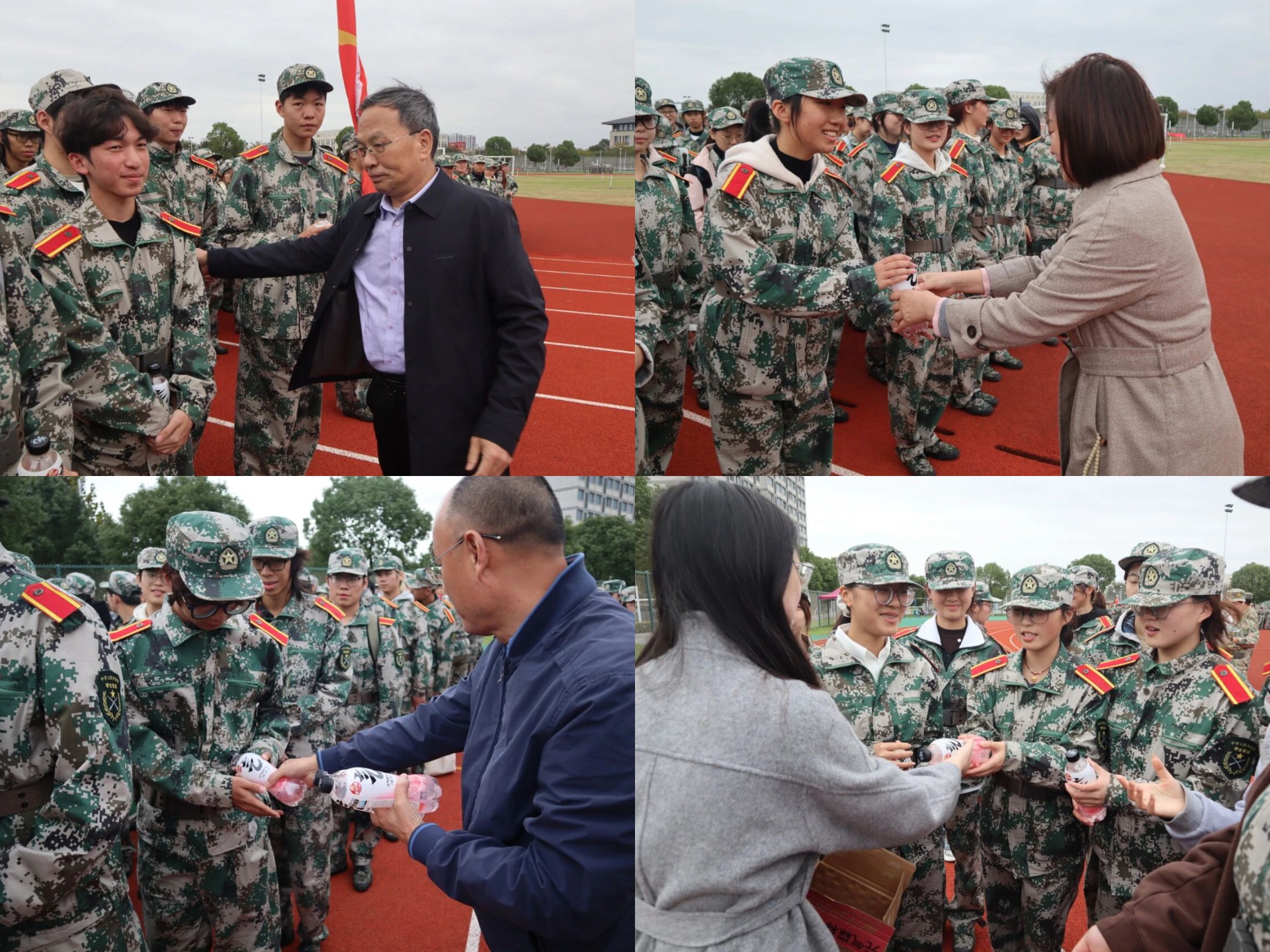 随后,学院领导、教师及学生组织成员一同为同学们送上精心准备的慰问品。一份份暖心的物资,一句句亲切的问候,凝聚着全院师生对参训新生的牵挂与鼓励,也让训练场洋溢着温馨与感动。