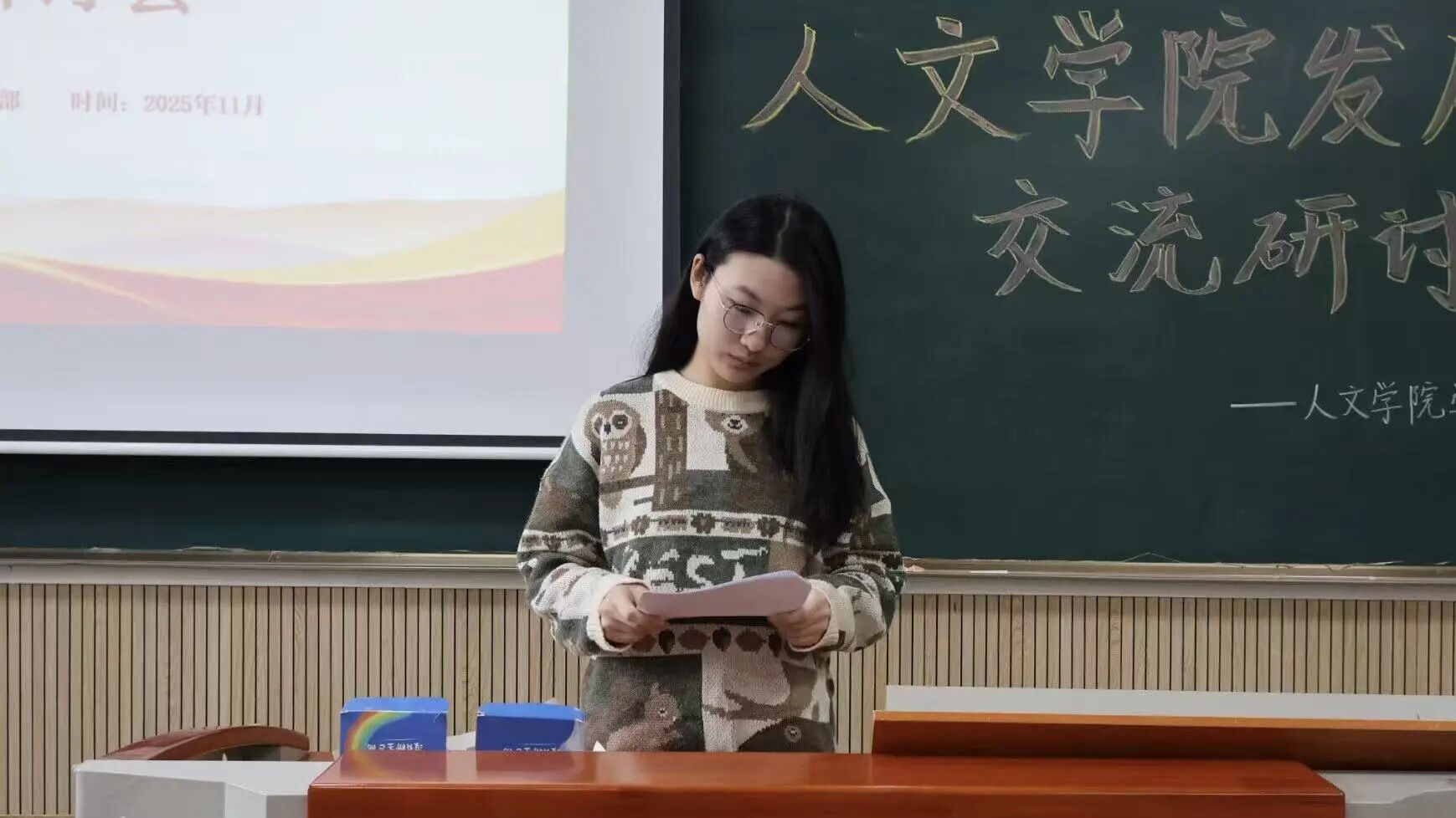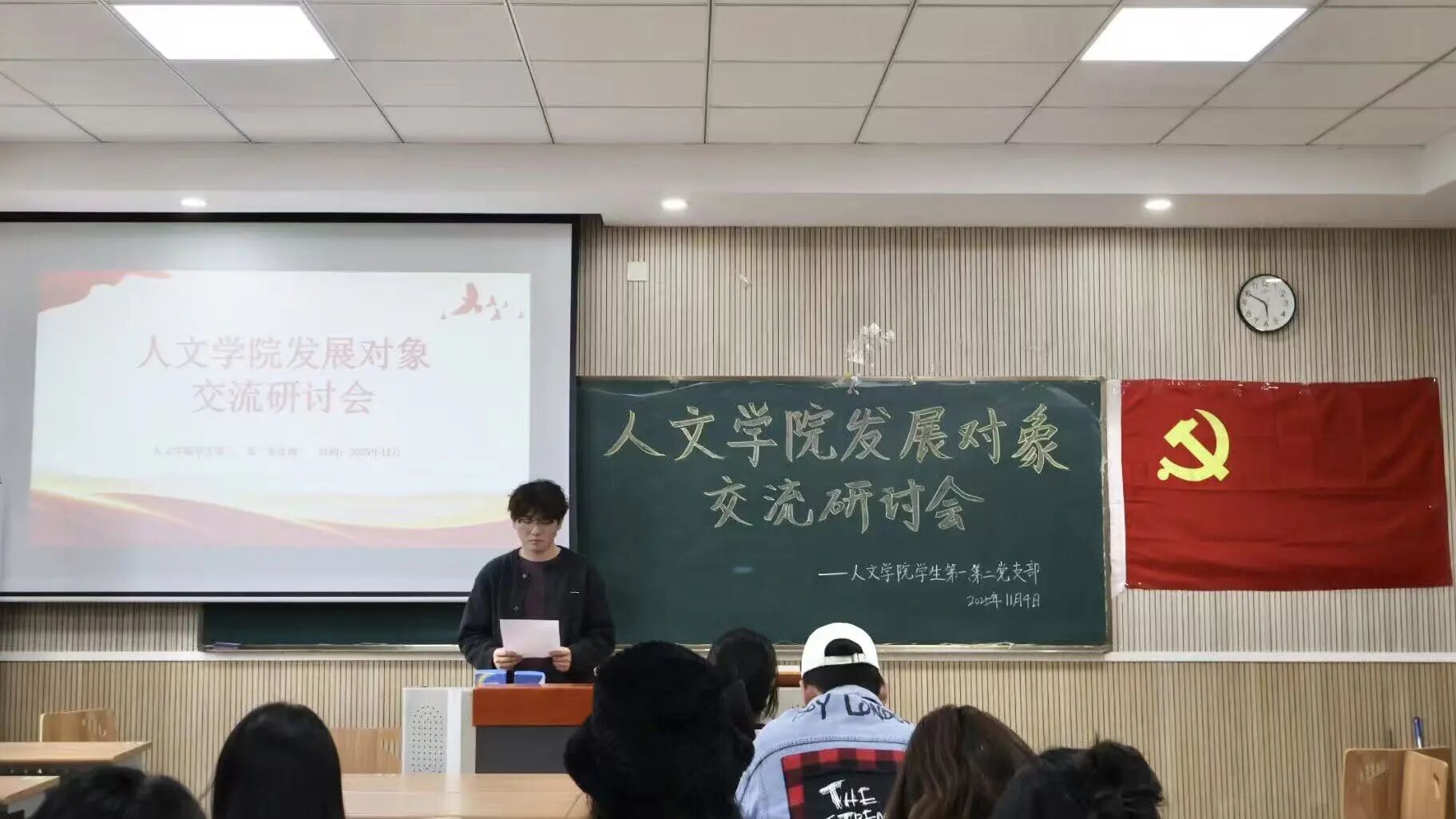 为加强对发展对象的思想政治考察,进一步端正入党动机,2025年11月4日中午,人文学院学生第一、第二党支部于崇文楼237教室联合召开发展对象作风锤炼暨交流研讨会。