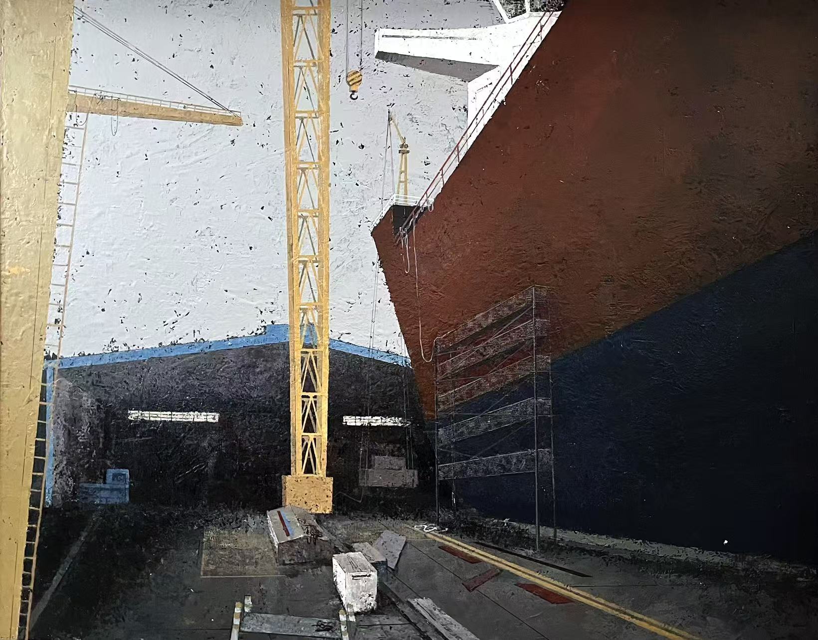 在近期落幕的“时代风华——第七届江苏省高校美术书法作品展”中,美术与设计学院872201班原森同学凭借油画作品《船厂静与力》脱颖而出,荣获学生组一等奖,充分展现了我院学子过硬的艺术专业素养。