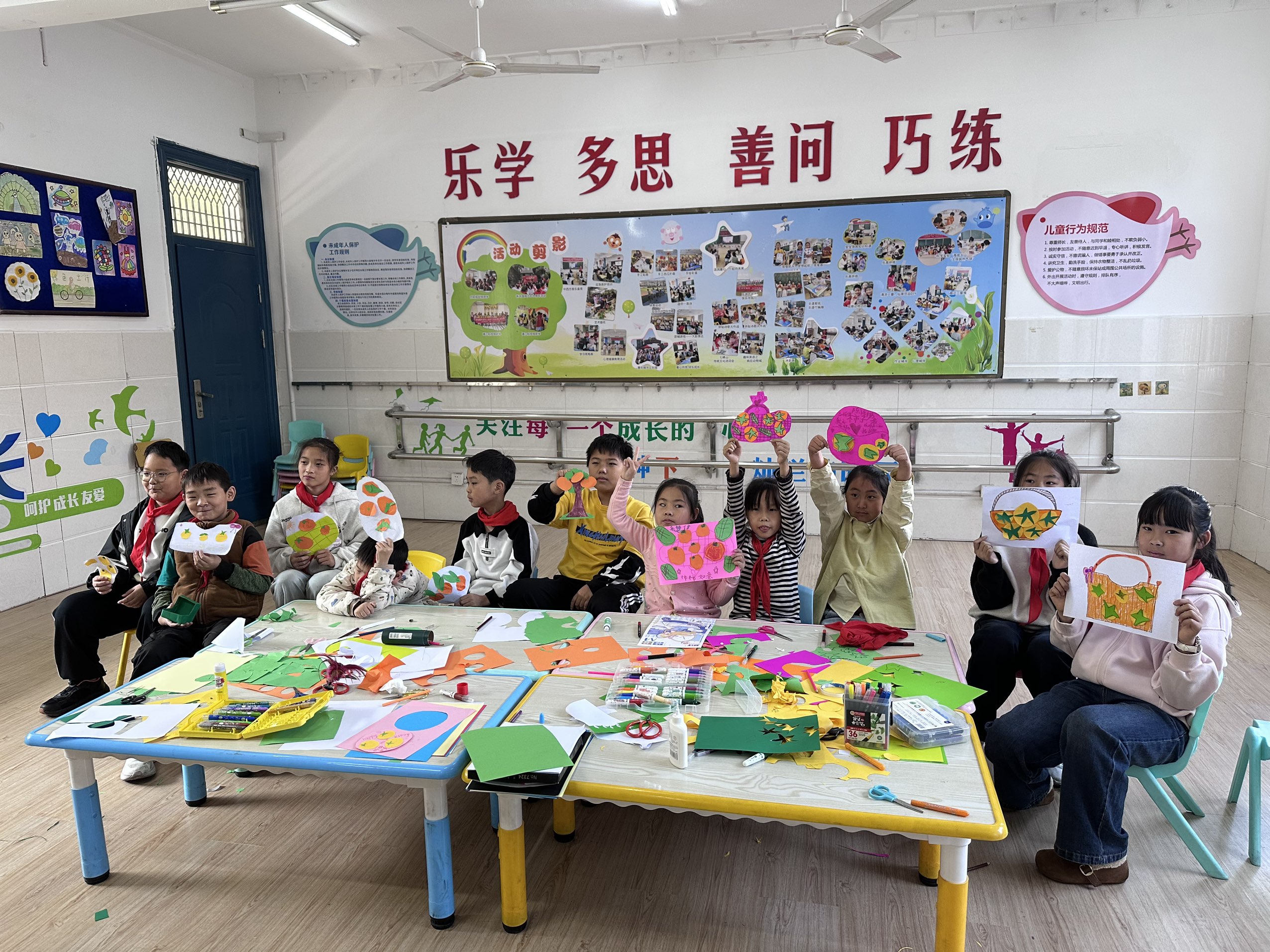 活动最后,孩子们手举“事事如意”剪纸作品合影。
