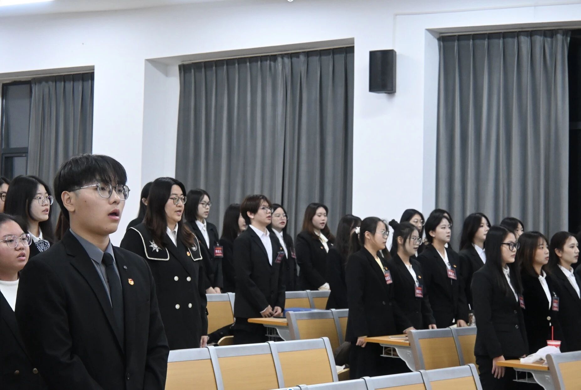 会议开始,全体代表有序签到入场。在奏唱国歌环节,全场肃立,激昂的旋律激发了每一位代表的使命感与责任感。
