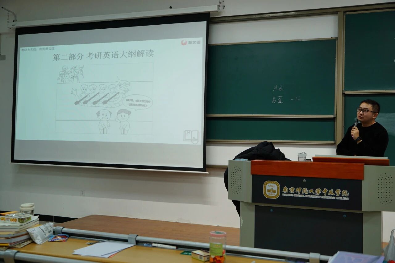 整场讲座内容系统、讲解清晰,刘老师以丰富的教学经验与专业的学科素养,帮助同学们建立起对考研英语的整体认知,也为后续复习提供了实用方法与明确路径。本次活动在同学们的积极互动中圆满结束。
