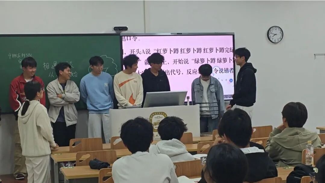 最后的“加字游戏”里,从“我要买汽车”开始,同学们依次加字接龙,过程中的停顿与忘词让游戏更具趣味性,也让大家在轻松氛围中放松了身心。