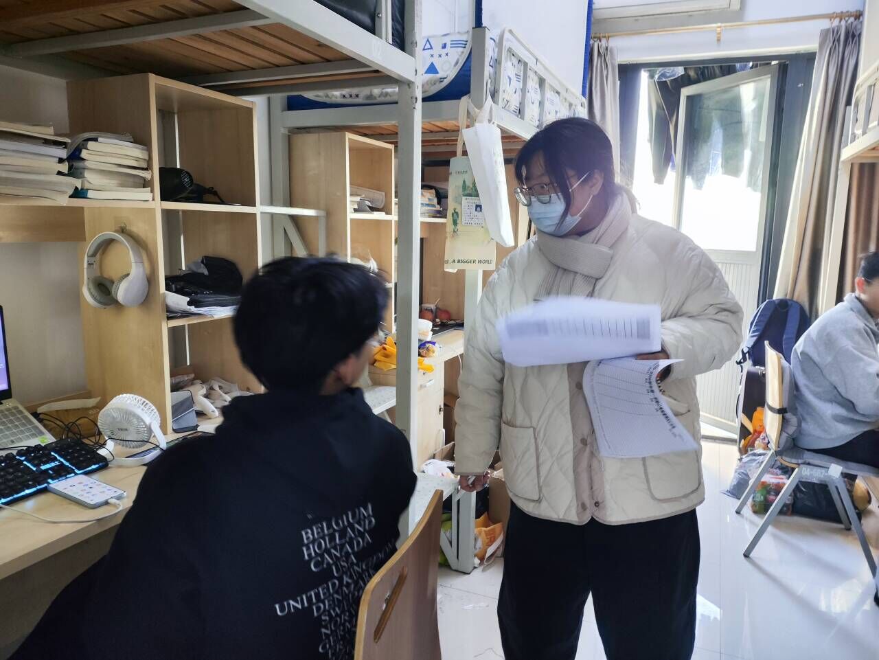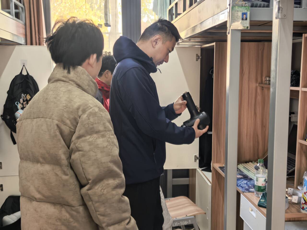 走访期间,老师们查看了宿舍的各项设施,并对安全情况进行了细致排查,重点关注乱接乱拉电线和违规使用大功率电器等现象。针对发现的不规范用电行为,他们当场给予了指正和引导。同时,辅导员们也向同学们阐明使用违规电器将带来严重的安全风险,希望大家能自觉遵守相关规定,共同营造一个安全的宿舍环境。