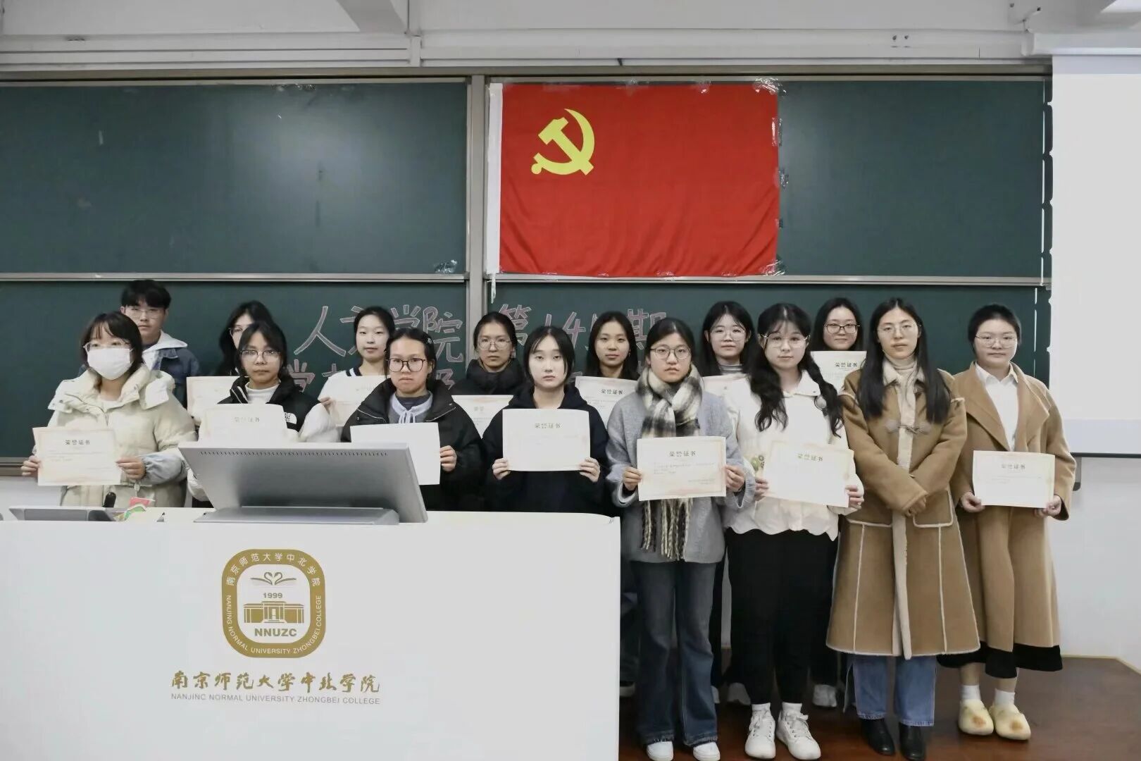 大会第四项议程,吴柯慧老师为第145期党校初级班优秀作品获得者颁发奖状并合影留念。