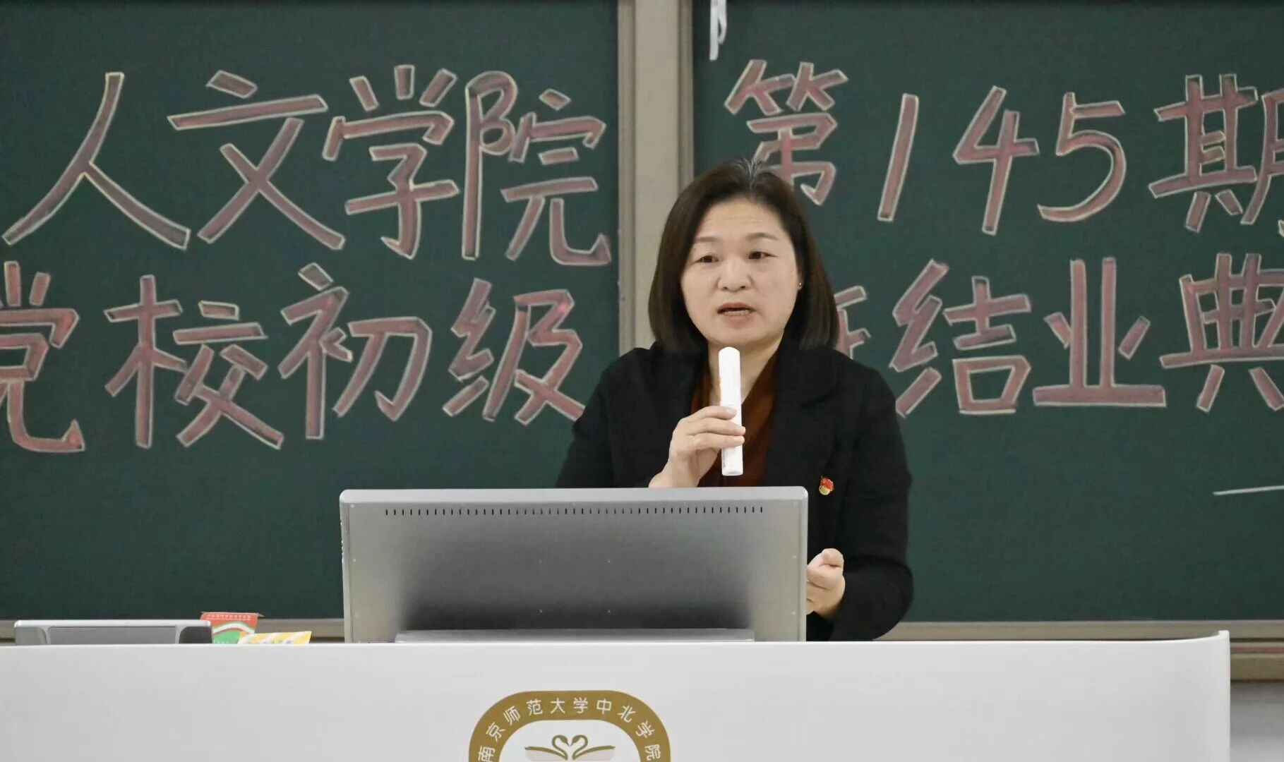 刘老师强调,学员们要将党的理论知识内化于心、外化于行,在学习和生活中勇于担当重任,始终坚持思想与行动相统一,主动向党组织靠拢,不断提升党性修养。