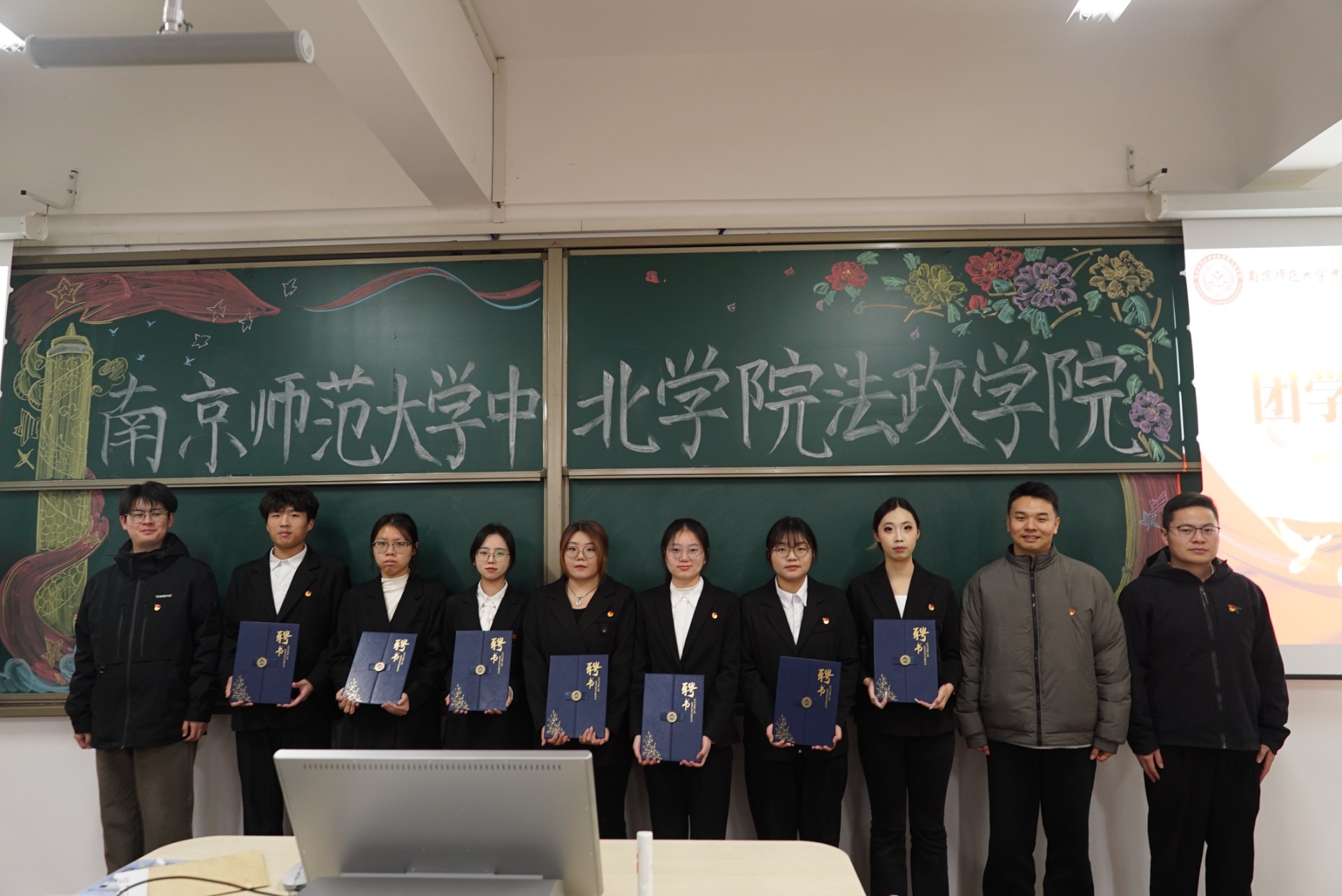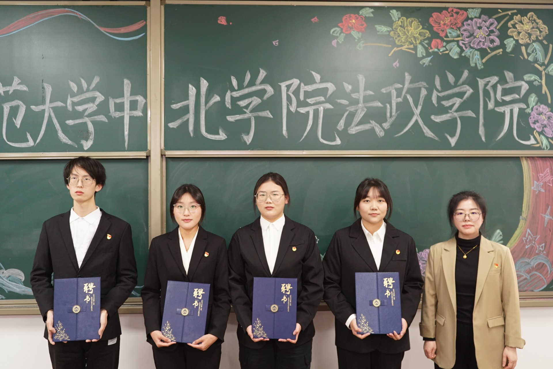 席胤清老师、杨孟老师、张泽阳老师为学生会各部门负责人、心理部负责人、法律援助协会负责人颁发聘书。