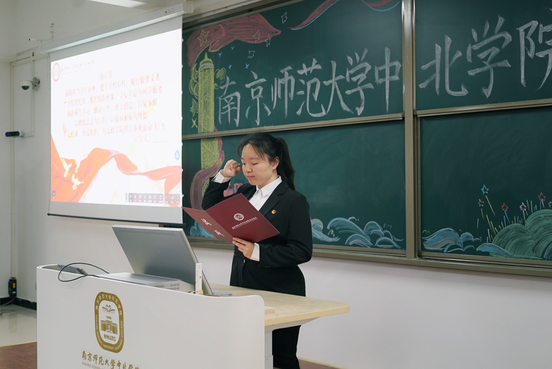 杨舒同学带领新一届团学骨干宣誓。