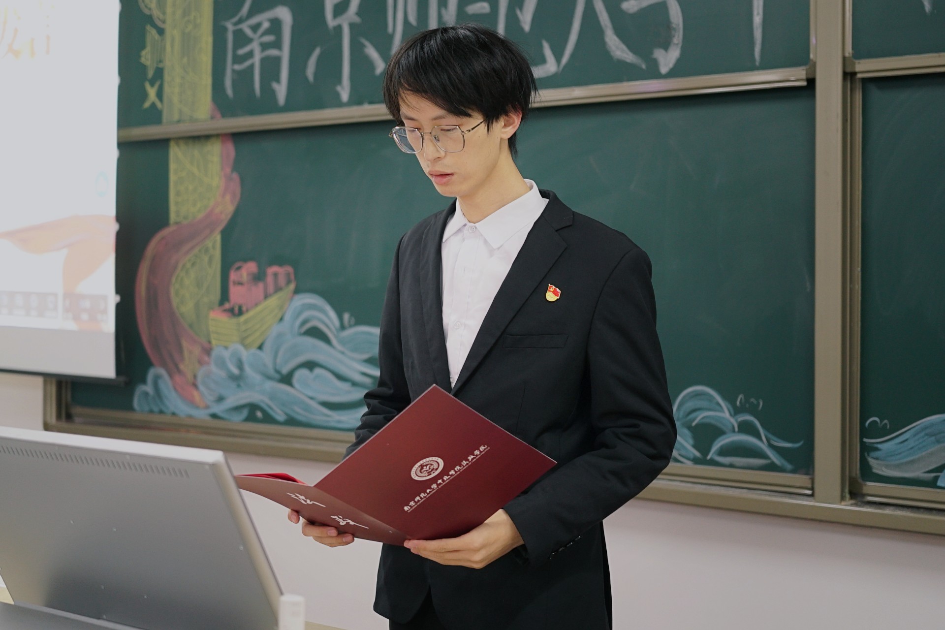 团学干部代表刘伟同学回顾了过去一年团学组织在院党总支和团委指导下取得的亮眼成绩,包括成功策划迎新晚会、开展主题教育、保障运动会赛事及志愿服务等。同时,他感谢了领导老师的悉心指导与全体成员的共同努力,强调新一届团学骨干应学好本领、扎根同学、灵活干事,以“强国有我”的责任担当续写法政学院团学工作新篇章。