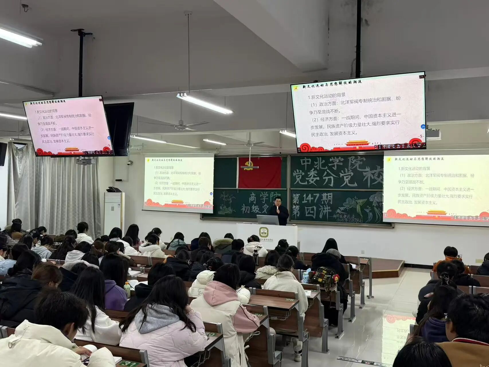 为引导青年学员深刻把握党的诞生历史必然性,筑牢信仰之基,商学院于2025年11月28日在敏行楼329教室顺利开展中北学院党委分党校第147期初级党校培训第四讲专题党课。本次党课由朱雨炜同志主讲,带领全体学员重温近代中国救亡图存的艰辛探索,深刻感悟中国共产党诞生的历史逻辑与时代意义。