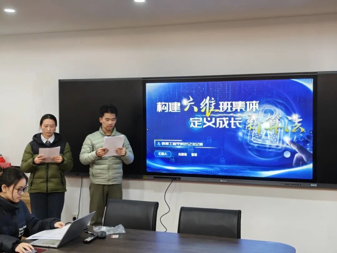 会上,三个班级的学生代表依次上台,通过PPT的形式,分别从班风建设、学风建设、文化建设、制度建设等方面,全面展示了班级建设的丰硕成果与独特风采。汇报内容充实,亮点纷呈,充分展现了信息工程学院学子朝气蓬勃、团结奋进的精神面貌。