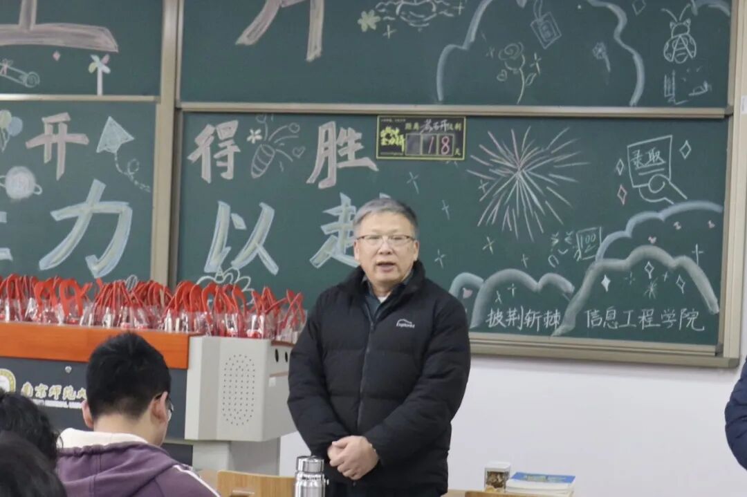 11月27日15:00,信息工程学院在敏学楼405教室开展2026届学生考研慰问活动。信息工程学院院长曲维光、党总支书记孙茂华、副书记周健、学工办主任王志超、辅导员陆层层、金莹老师出席本次活动,为备战考研的学子送上暖心关怀、缓解备考压力,助力大家以更好的状态迎接考试。