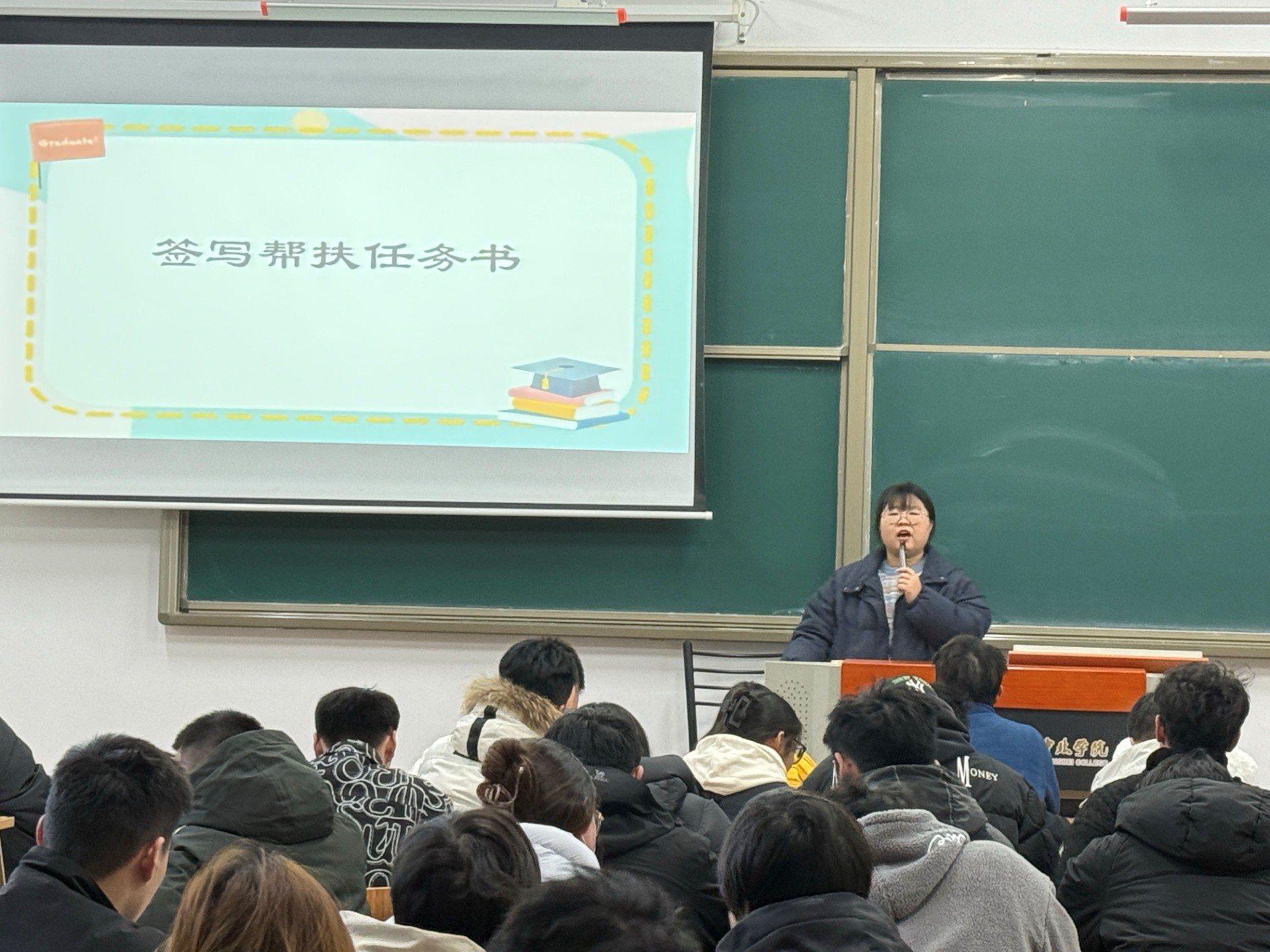 郝老师以亲切的自我介绍迅速活跃了现场气氛,随后详细解答了退伍士兵大学生学业衔接中的常见问题,并重点强调了帮扶纪律,引导“学习守护天使”与被帮扶同学养成定期沟通、及时反馈、动态调整计划的工作习惯。会议还明确了帮扶任务书的填写规范与考核标准,强化规则意识,规范帮扶行为。在帮扶任务书签订环节,双方认真阅读并郑重签字,既是对帮扶责任的承诺,也体现了彼此的信任。