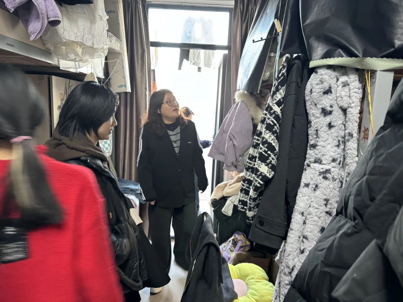 活动前期,学院通过各班生活委员广泛动员,明确卫生、内务及安全排查要求。检查过程中,师生共同走访各宿舍,围绕卫生状况、物品摆放与安全隐患进行细致评估,并与同学们亲切交流日常生活需求。对内务整洁的宿舍予以表扬,对存在不足的提出改进建议。
