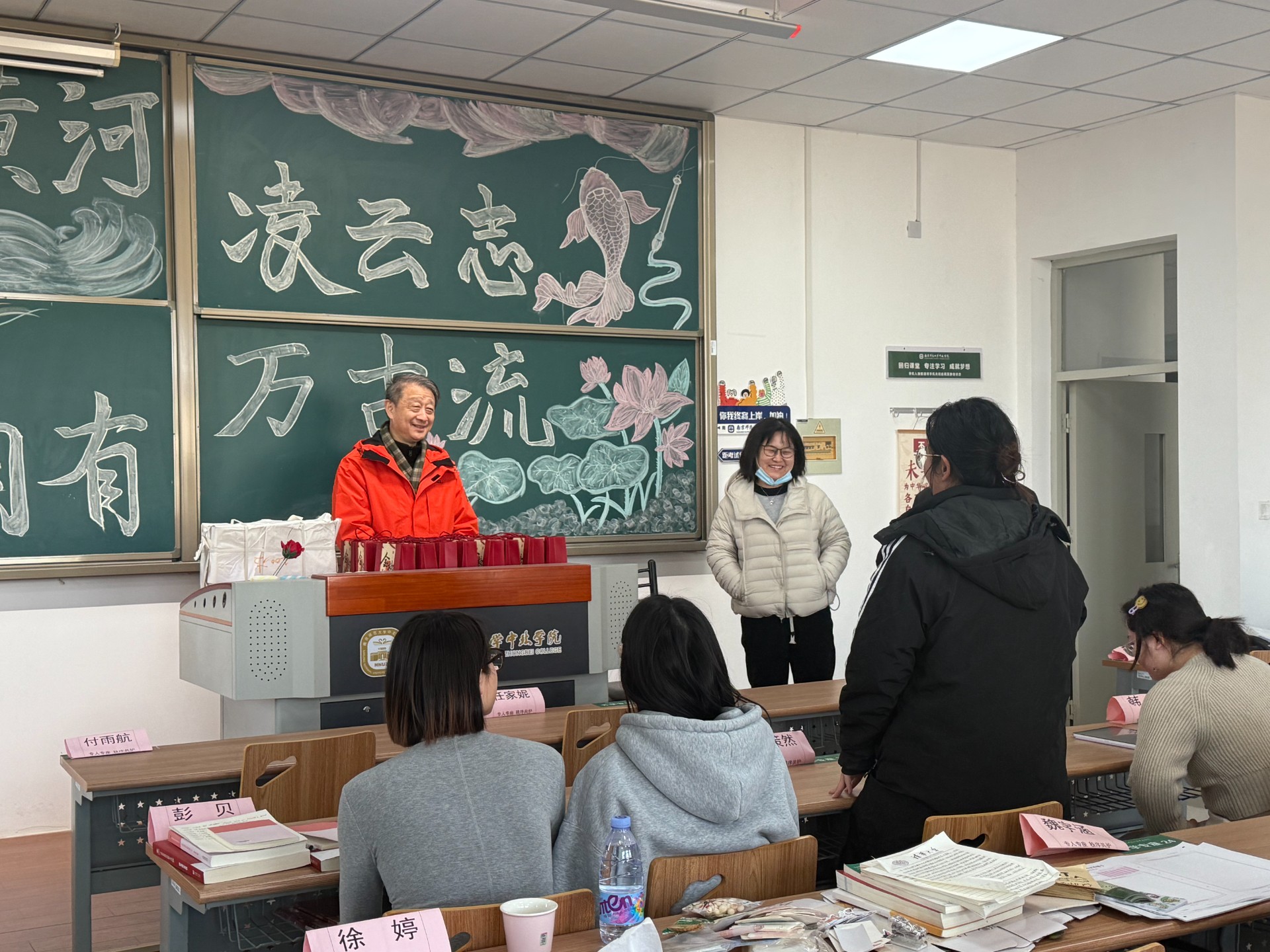 韩院长与学子们亲切交流,详细询问他们的复习进度、备考状态及生活需求,叮嘱大家在全力冲刺的同时,注意劳逸结合,保持良好心态和规律作息。老师们为学子们送上了“考研暖心包”,每份物资都承载着学院对学子们的殷切期望。