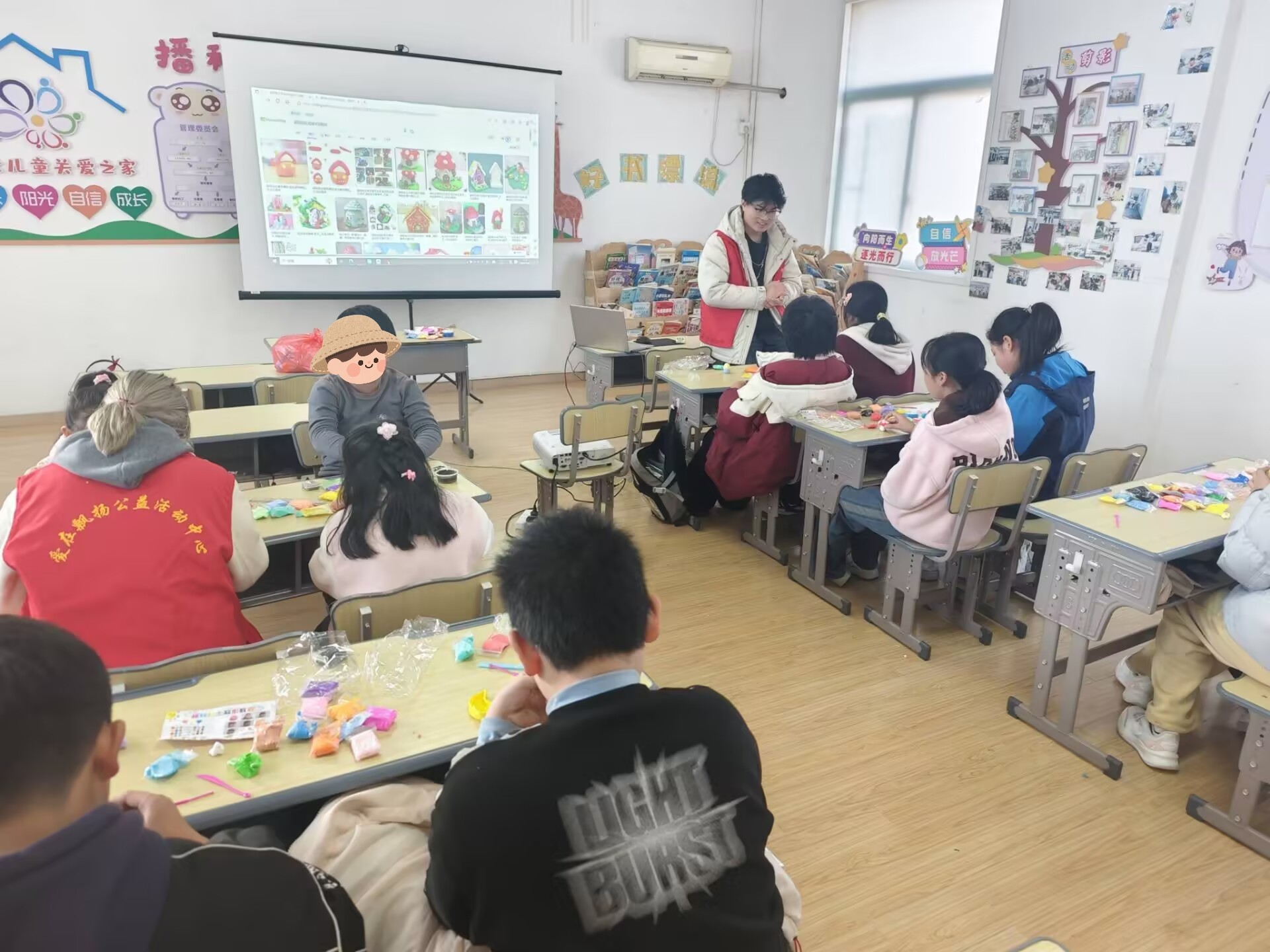 12月6日,志愿者团队来到丹北镇未保站,全程辅助老师开展综合活动。课堂上,他们俯身为孩子讲解课业难题,细致指导他们书写与思考;