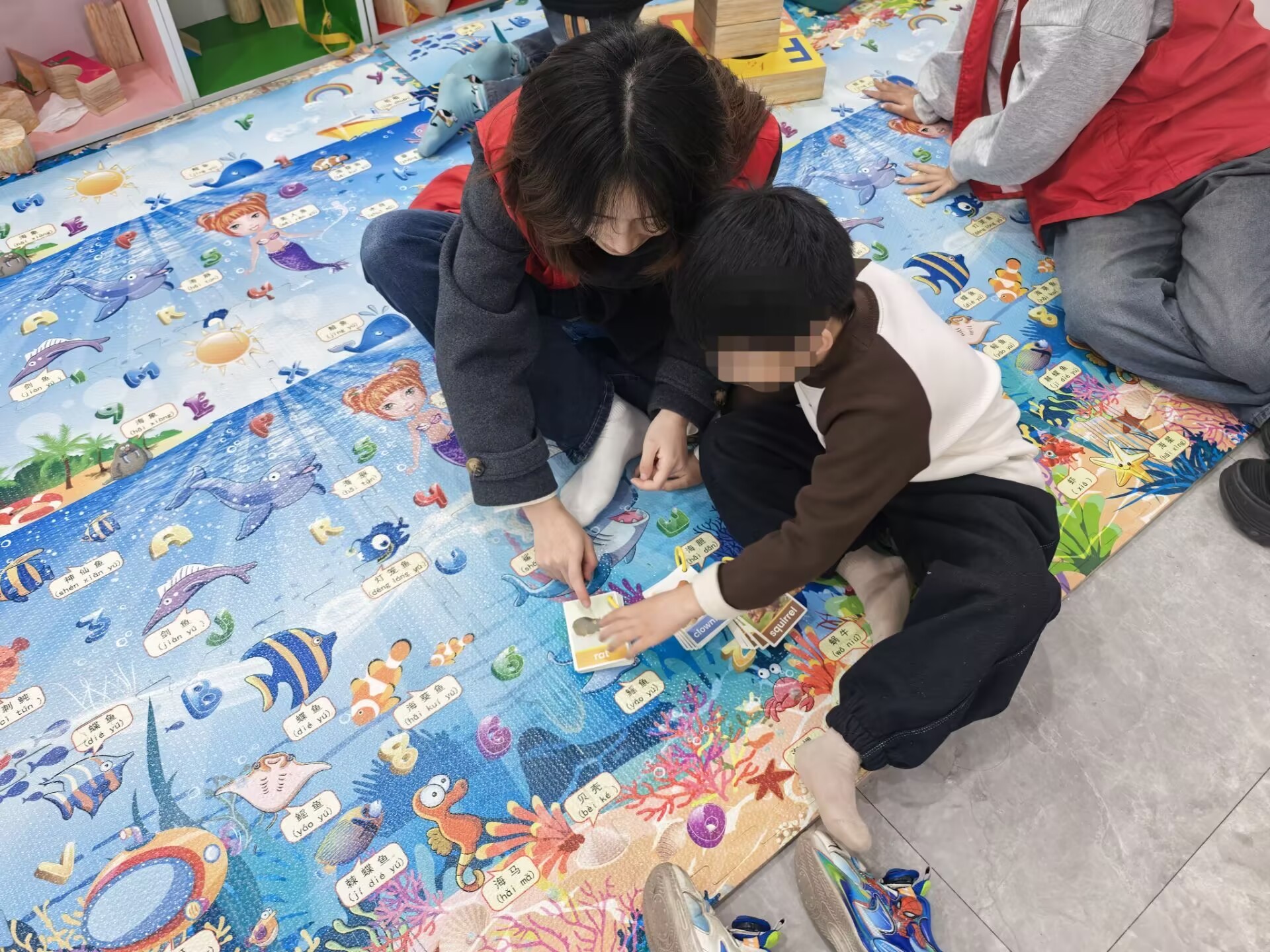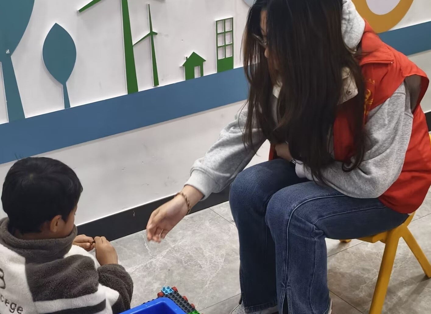 12月2日,志愿者走进练湖新城社区党群服务中心,与幼儿们开启“自由区域”游戏时光。活动室内,海底主题地垫上摆满趣味教具,志愿者们与孩子并肩而坐,协助完成拼图配对、搭建乐高积木,在互动中引导幼儿提升观察、协作能力,让游戏成为成长的“快乐课堂”。