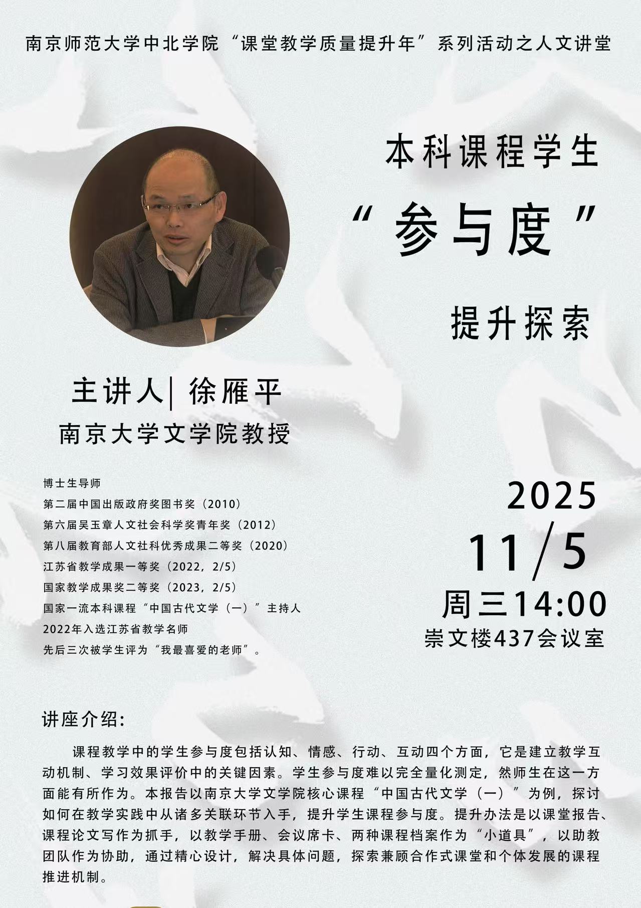 人文大讲堂|本科课程“参与度”提升探索