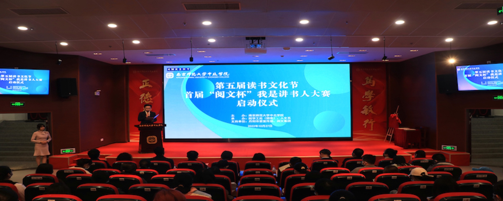 10月27日下午,我院在图书馆报告厅举办第五届读书文化节暨“阅文杯”我是讲书人大赛启动仪式。丹阳市委宣传部常务副部长周菊云,阅文集团起点阅读总经理梅仁杰、学院党委书记李莉、副书记冷开振、副院长钟文辉等领导出席启动仪式。参加此次活动的还有相关职能部门负责人、各系科党总支副书记、阅文集团代表、往届我是讲书人优秀选手代表。