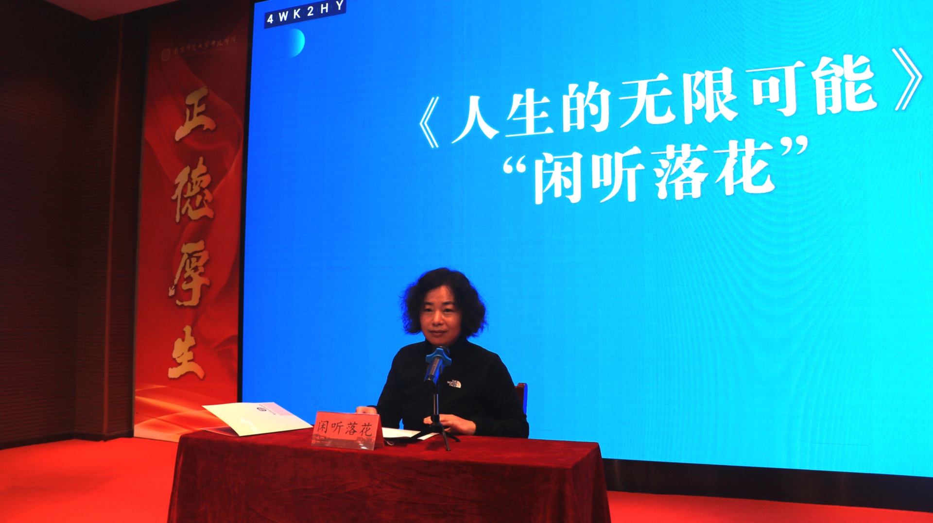 启动仪式结束后著名网络文学作家“闲听落花”女士和第八届鲁迅文学奖获得者,南京师范大学文学院教授、博士生导师何平教授为在场师生作了辅导报告。